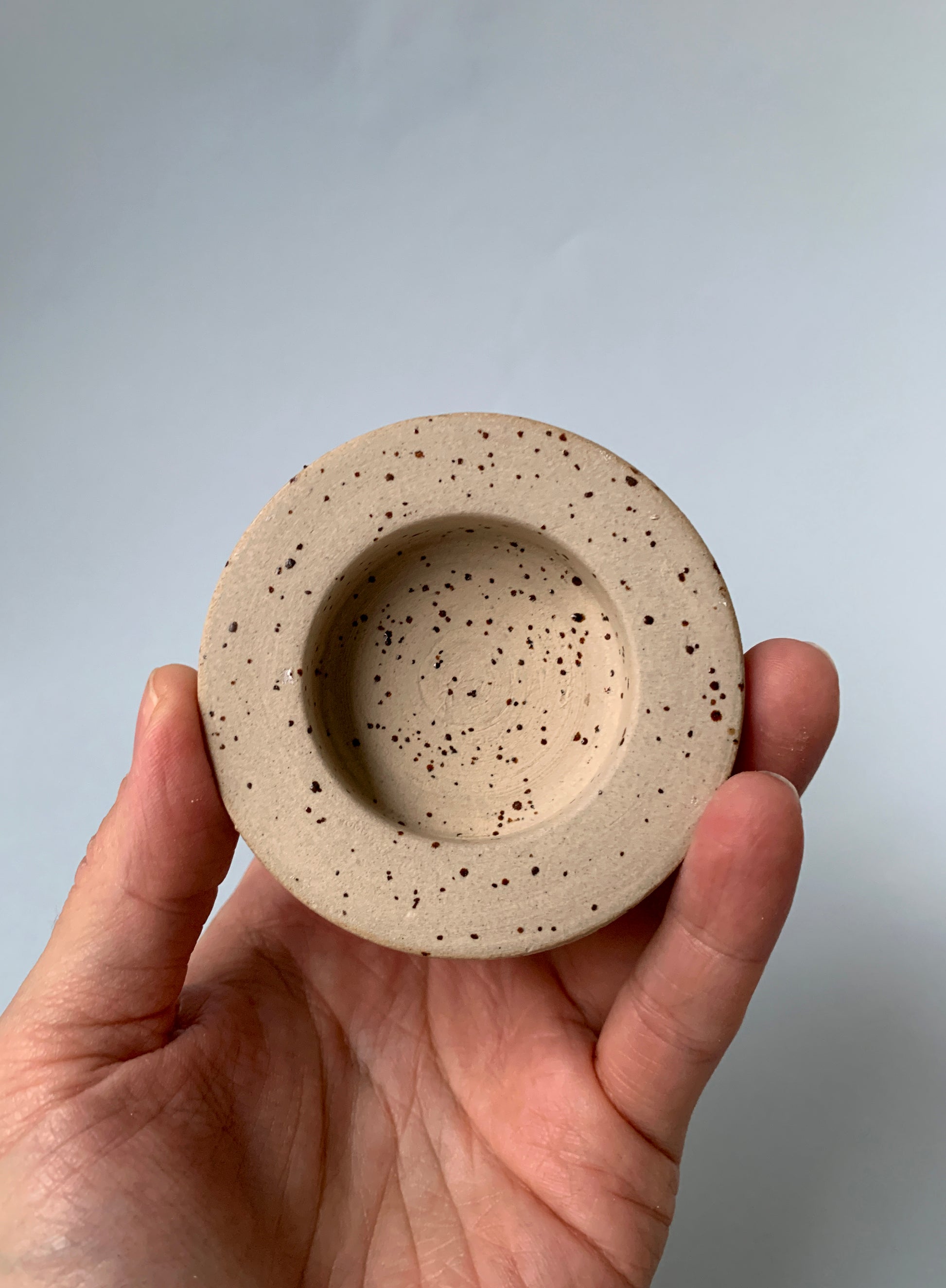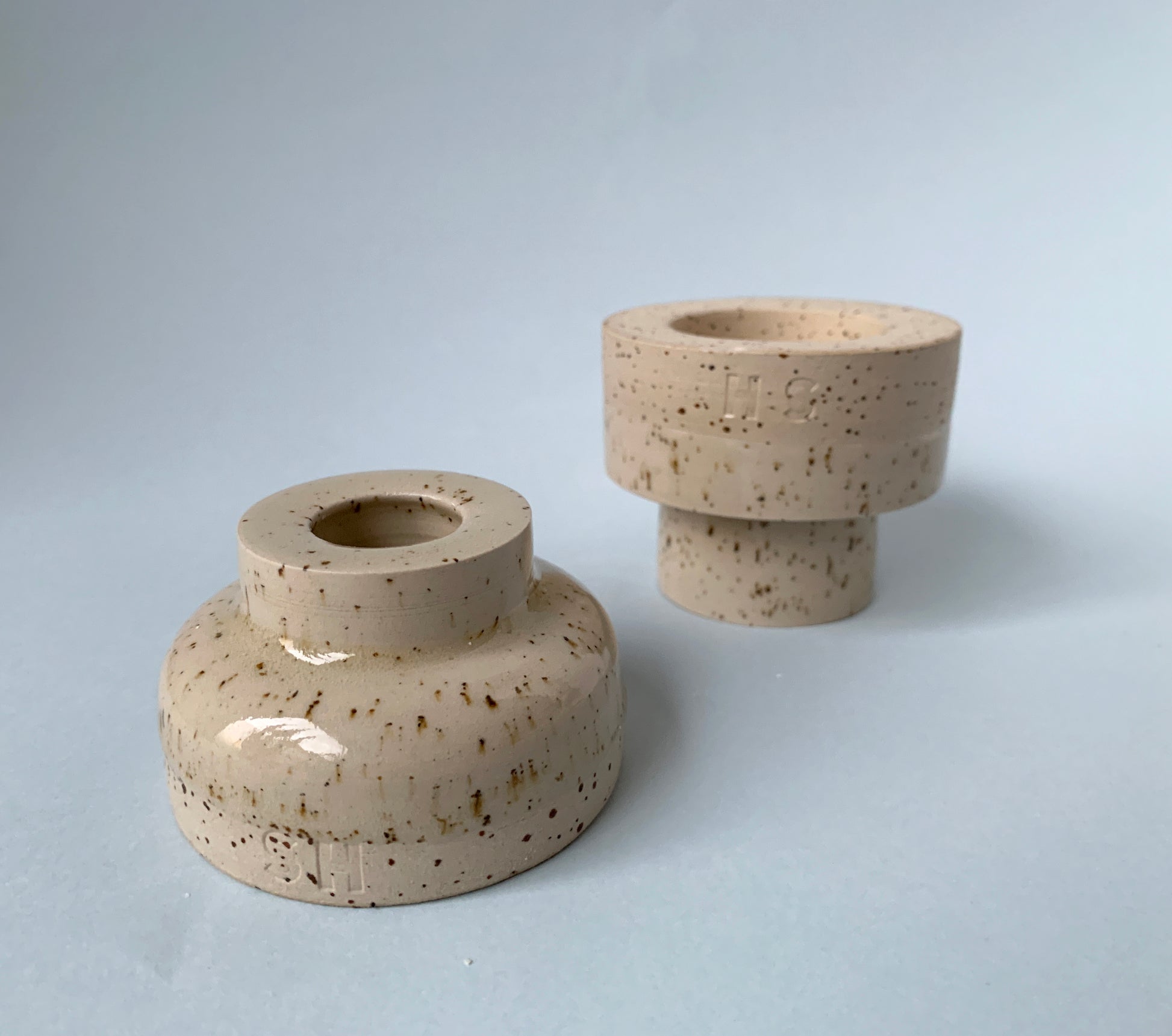 Vändbar ljusstake, ena sidan för ljus typ kronljus och den andra sidan för värmeljus.