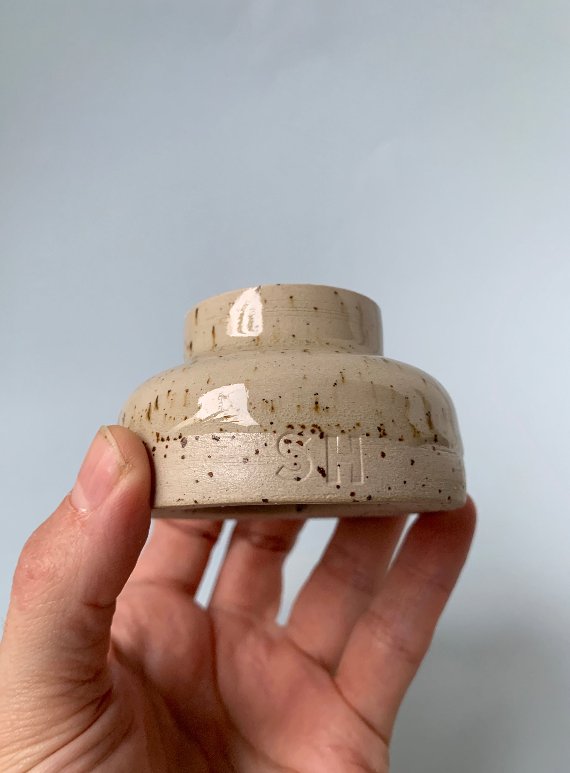 Färg: Ljus lera med lavafläckar, glaserad med en blank, transparent glasyr.