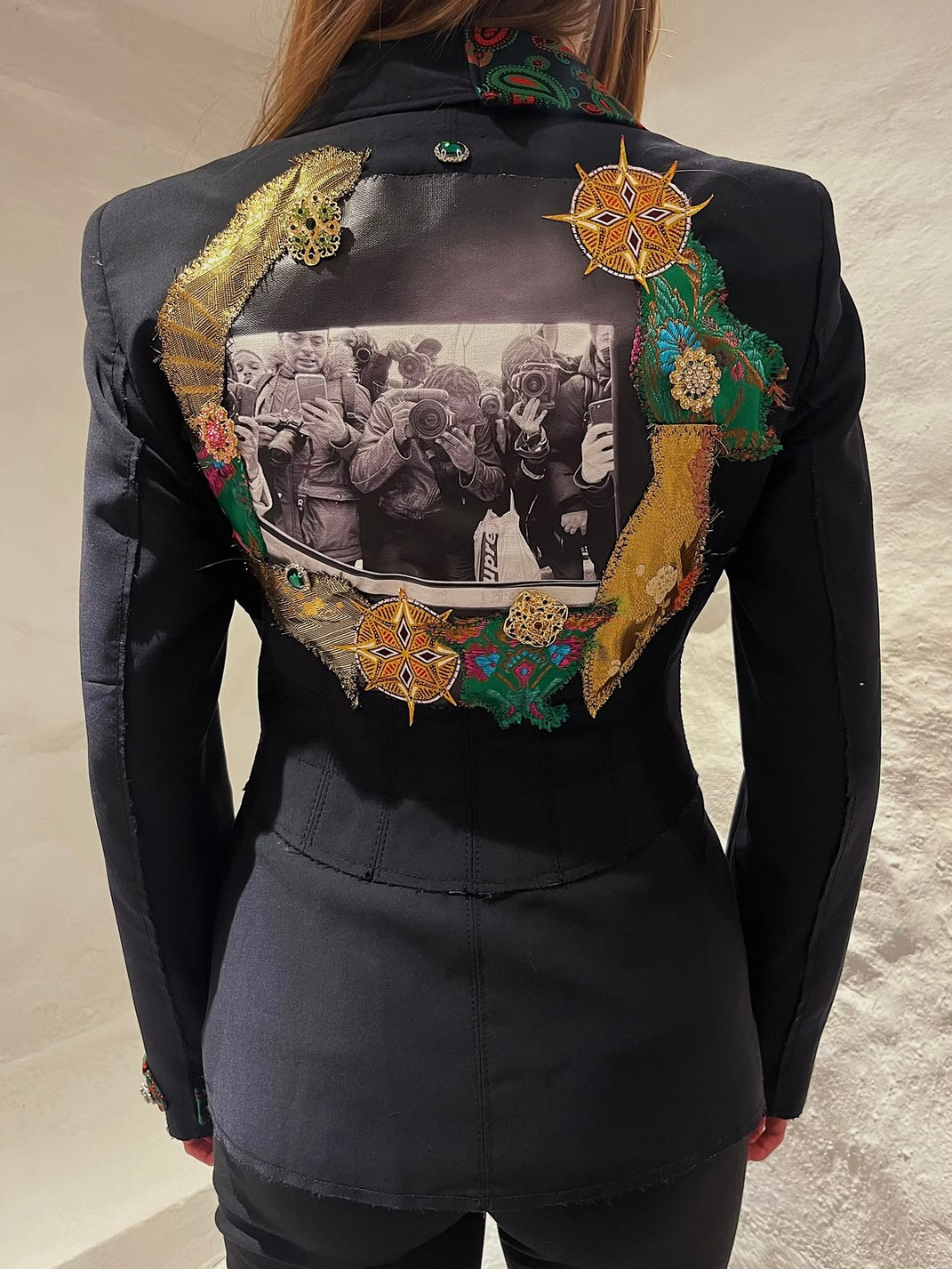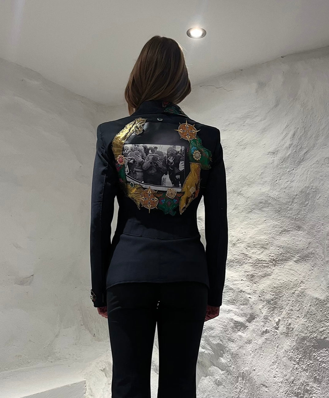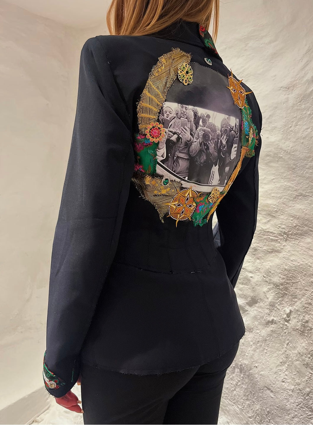 Mått: total bredd: 37 cm, total längd: 67 cm, axelbredd: 46 cm, ärmlängd: 63 cm