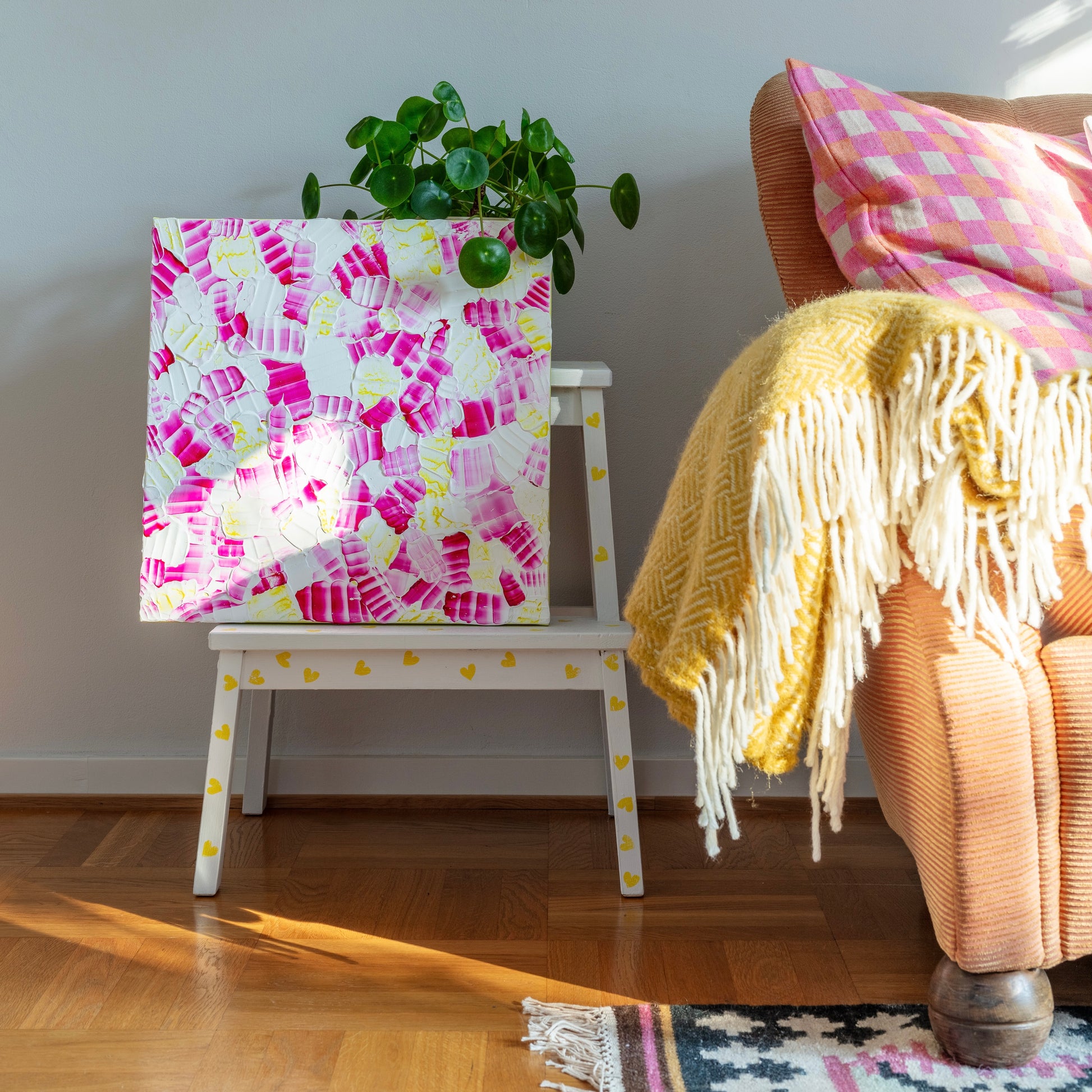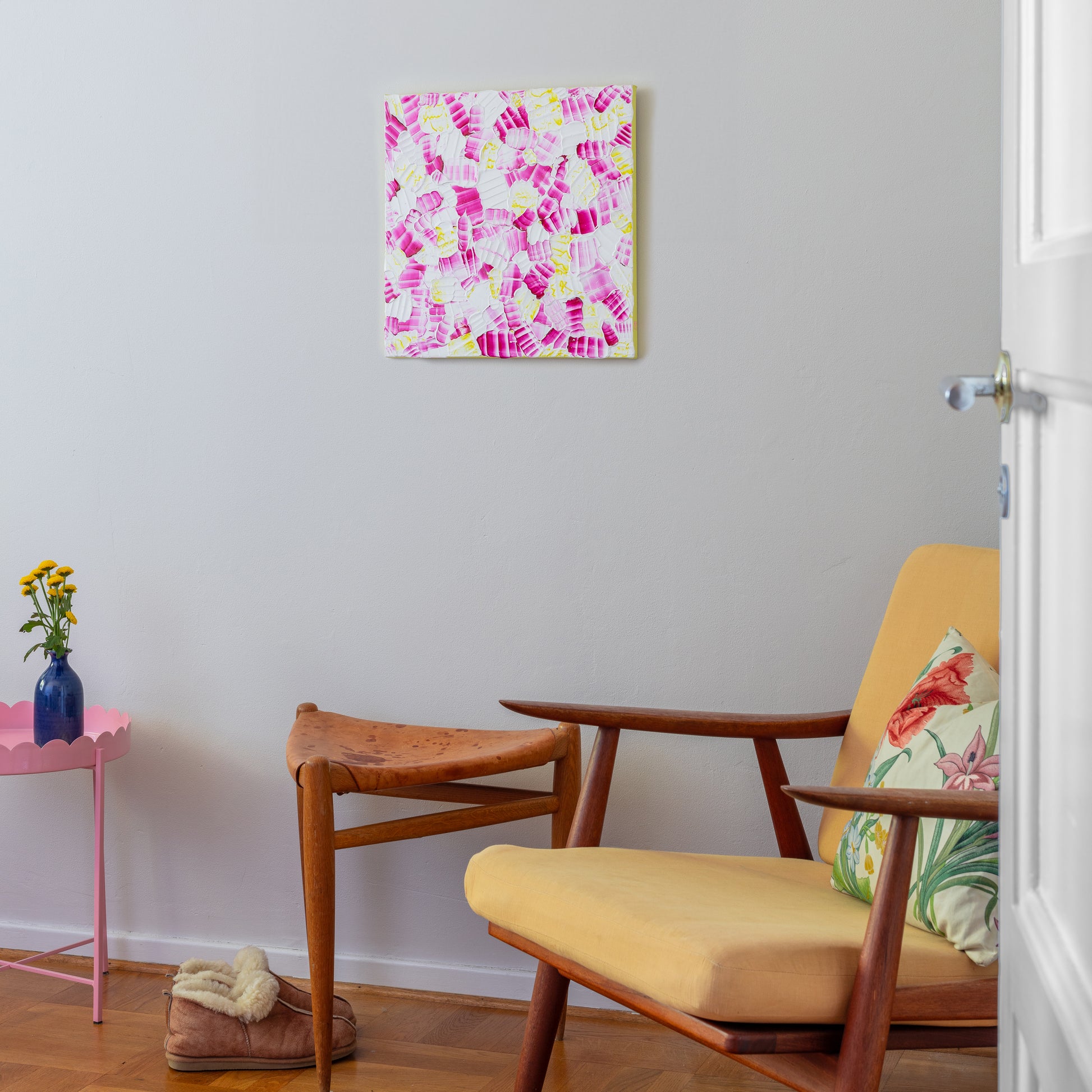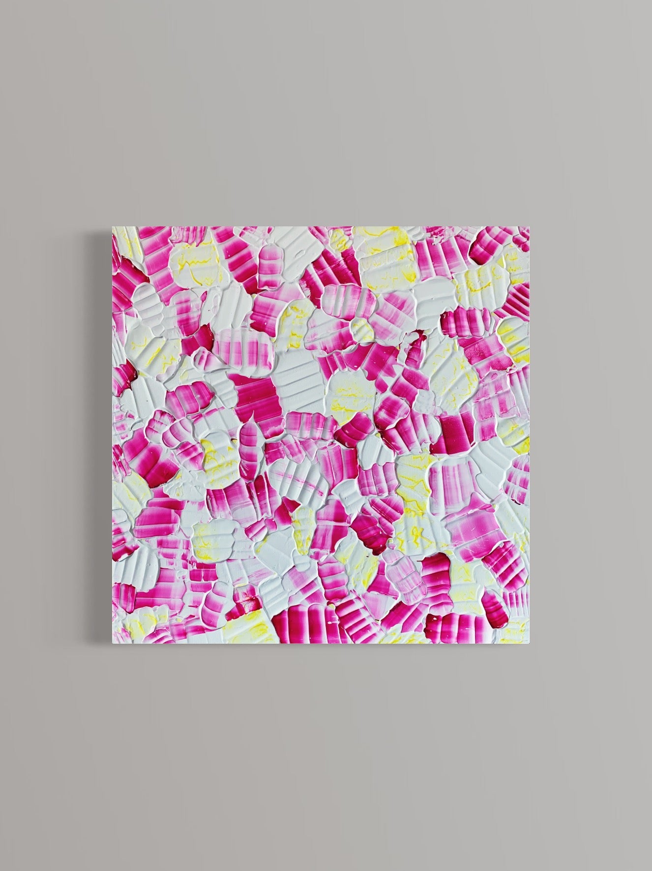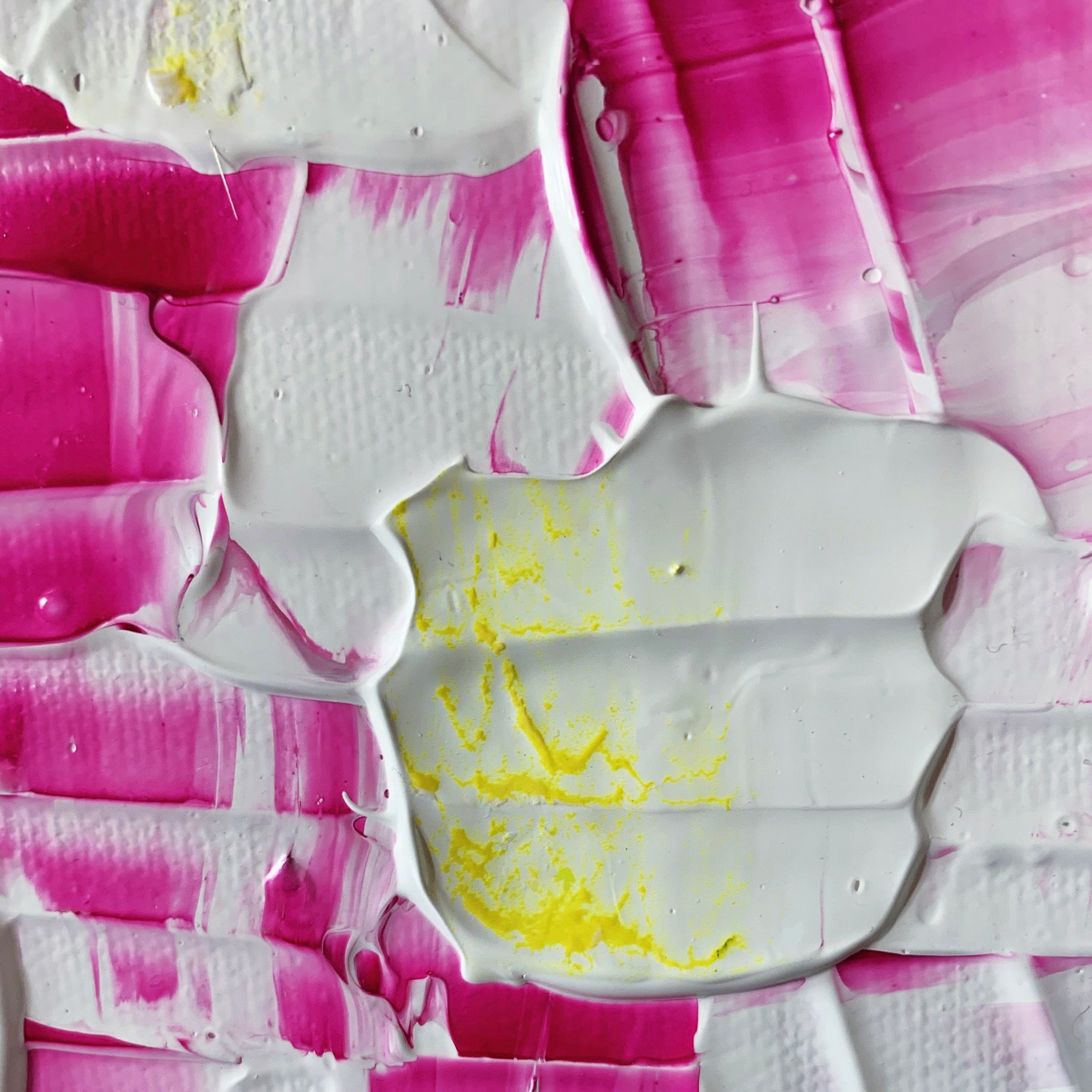 Inspirerad av hallon- och citronsorbet fångar denna originalmålning glädjen och fräschheten hos en somrig dessert. Tjocka penseldrag i rosa, gult och vitt möts och sprider värme och ljus i ditt hem.