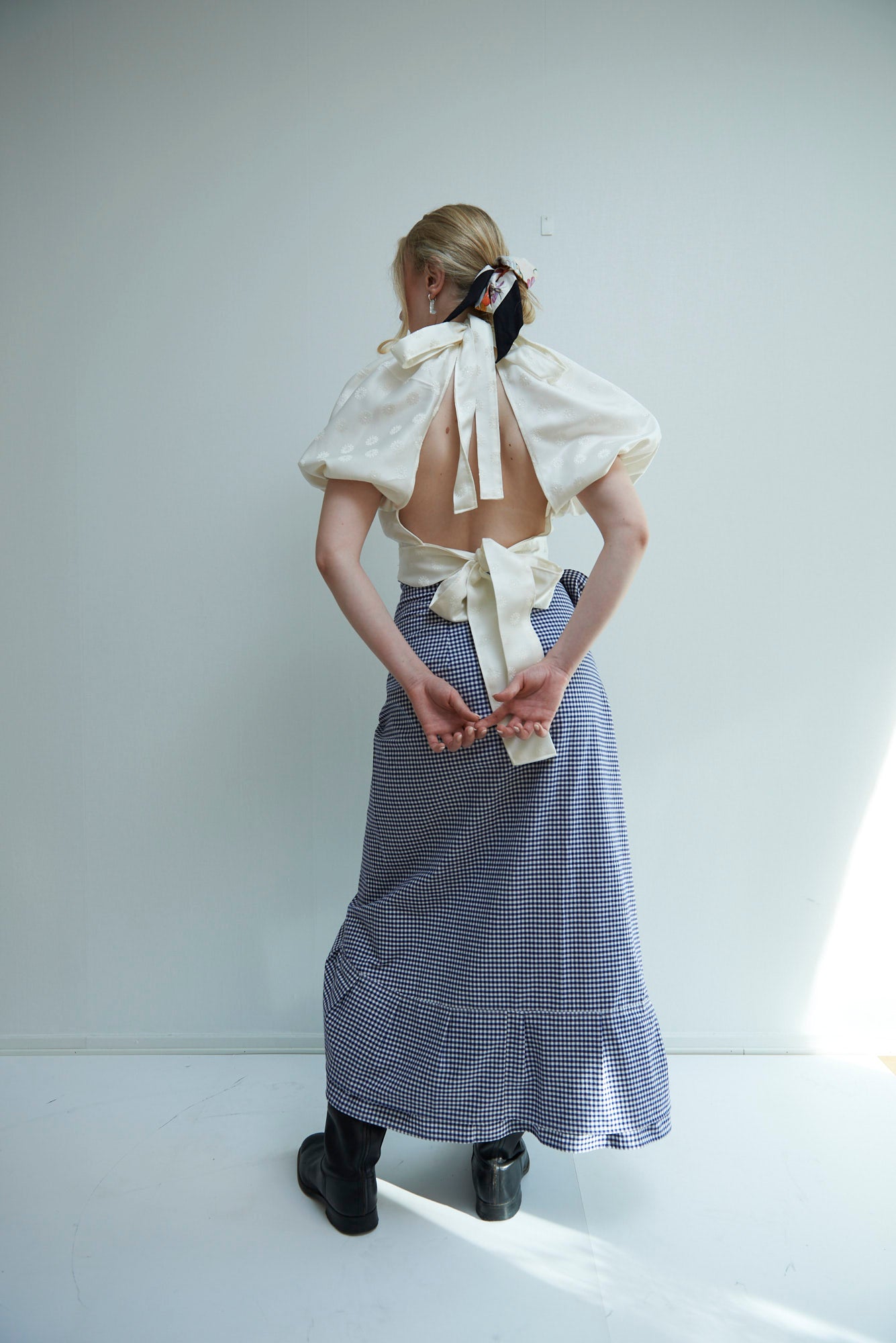 Whilde Studios Florence kjol är gjord av ett vintage bomullstyg och faller vackert samtidigt som den passar till nästan vad som helst. Kjolen har en feminin volangfåll och knytband för att passa flera storlekar. Passar S/M