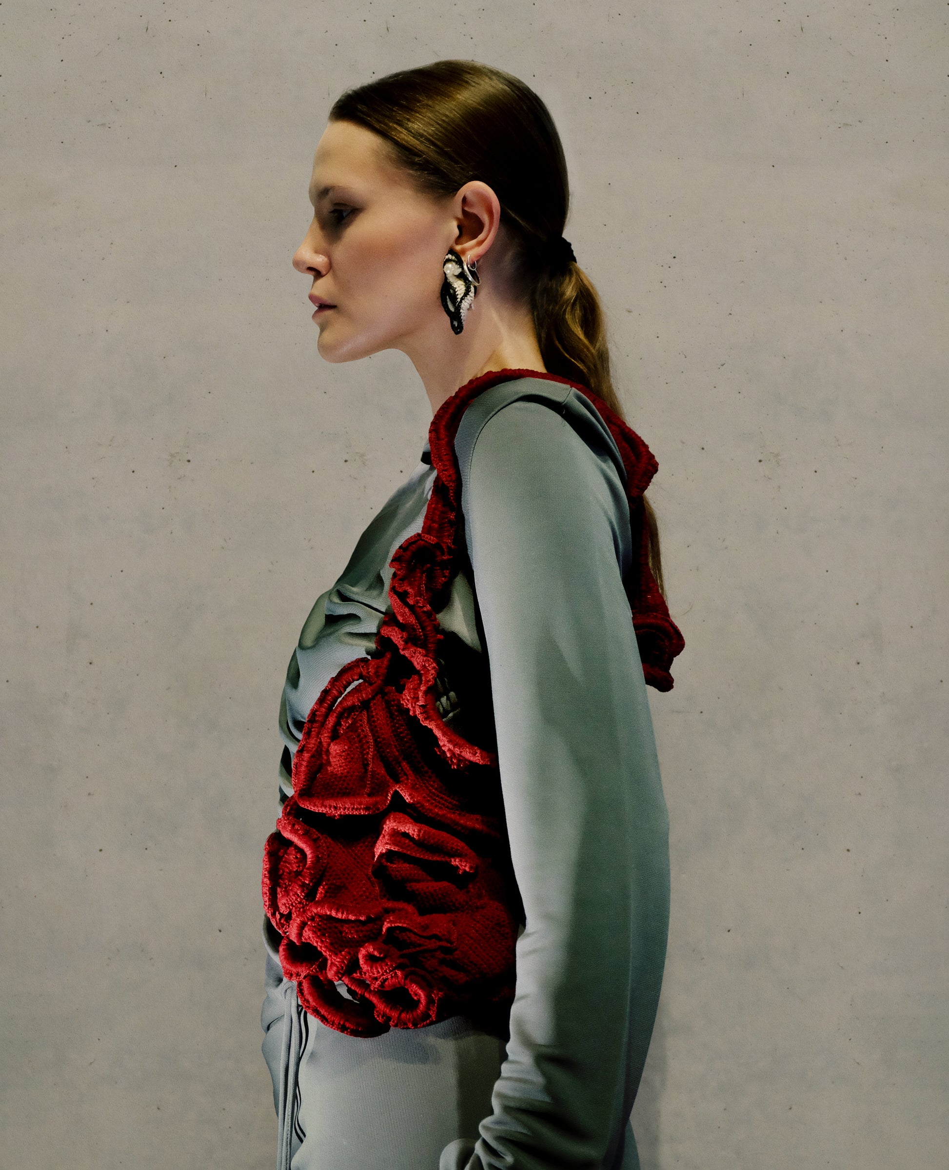 I djupt karmosinröd, en färg som symboliserar kvinnlighet, ligger essensen av korion – den skyddande hinnan som när och omfamnar livets portal. Genom denna ömtåliga men motståndskraftiga membran flödar näring och andning, vilket säkerställer skapelsens oändliga dans. Låt karmosinrött hedra den röda tråden som löper genom våra ådror, från våra förfäder till livets eviga fortsättning.