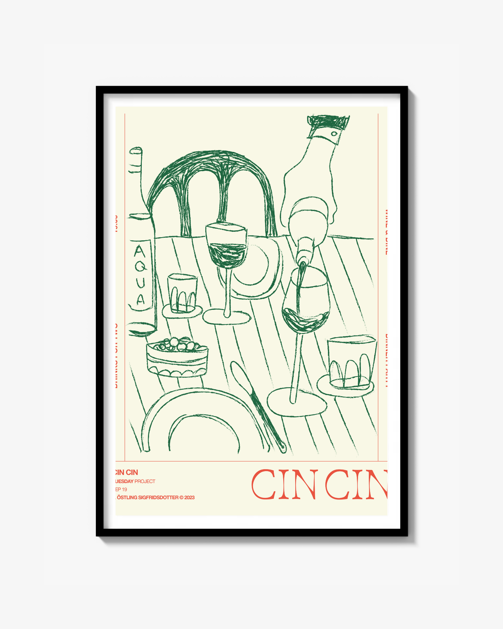 Ge dina väggar ett lyft med denna minimalistiska, neutrala affisch av konstnären Louise Östling Sigfridsdotter! "CINCIN" är ett perfekt konstverk för matentusiasten och för hemmet som behöver mer rolig och unik inredning.