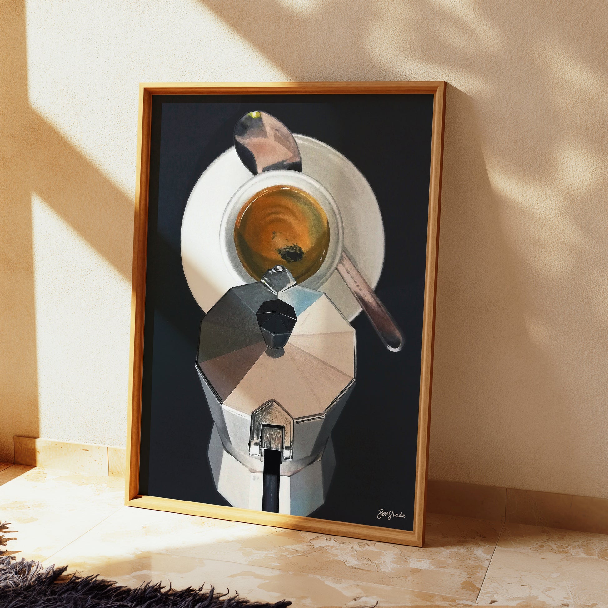 Tryckt reproduktion av det ursprungliga akrylkonstverket "Coffee Break" av Ben Slade.