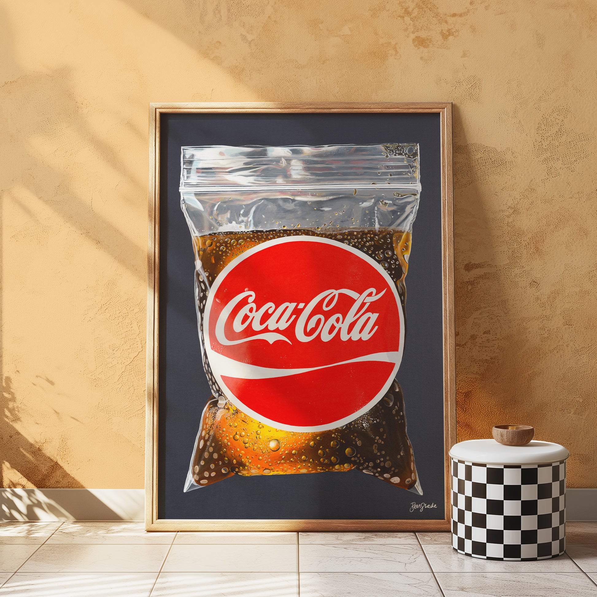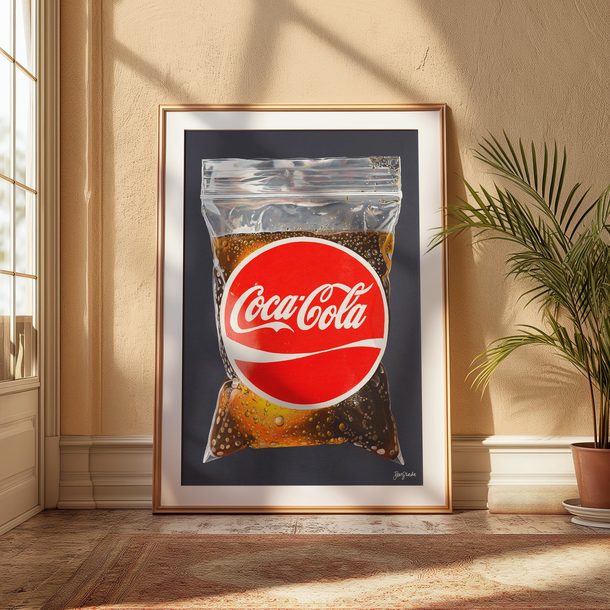 Tryckt reproduktion av det ursprungliga akrylkonstverket "Coke" av Ben Slade.