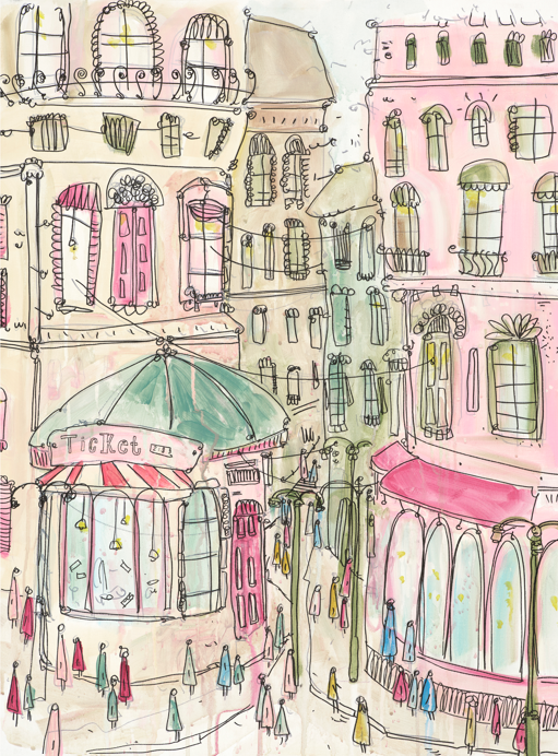 Addera charm och lekfullhet i din inredning med konstpostern “Ticket”, en handsignerad illustration av Nike Adawi. Inspirerad av den livliga stadslivet, med färgglada byggnader, fantasifulla fasader och en charmig biljettkiosk. De pastelliga tonerna och det intrikata linjearbetet skapar en drömsk, livlig atmosfär.