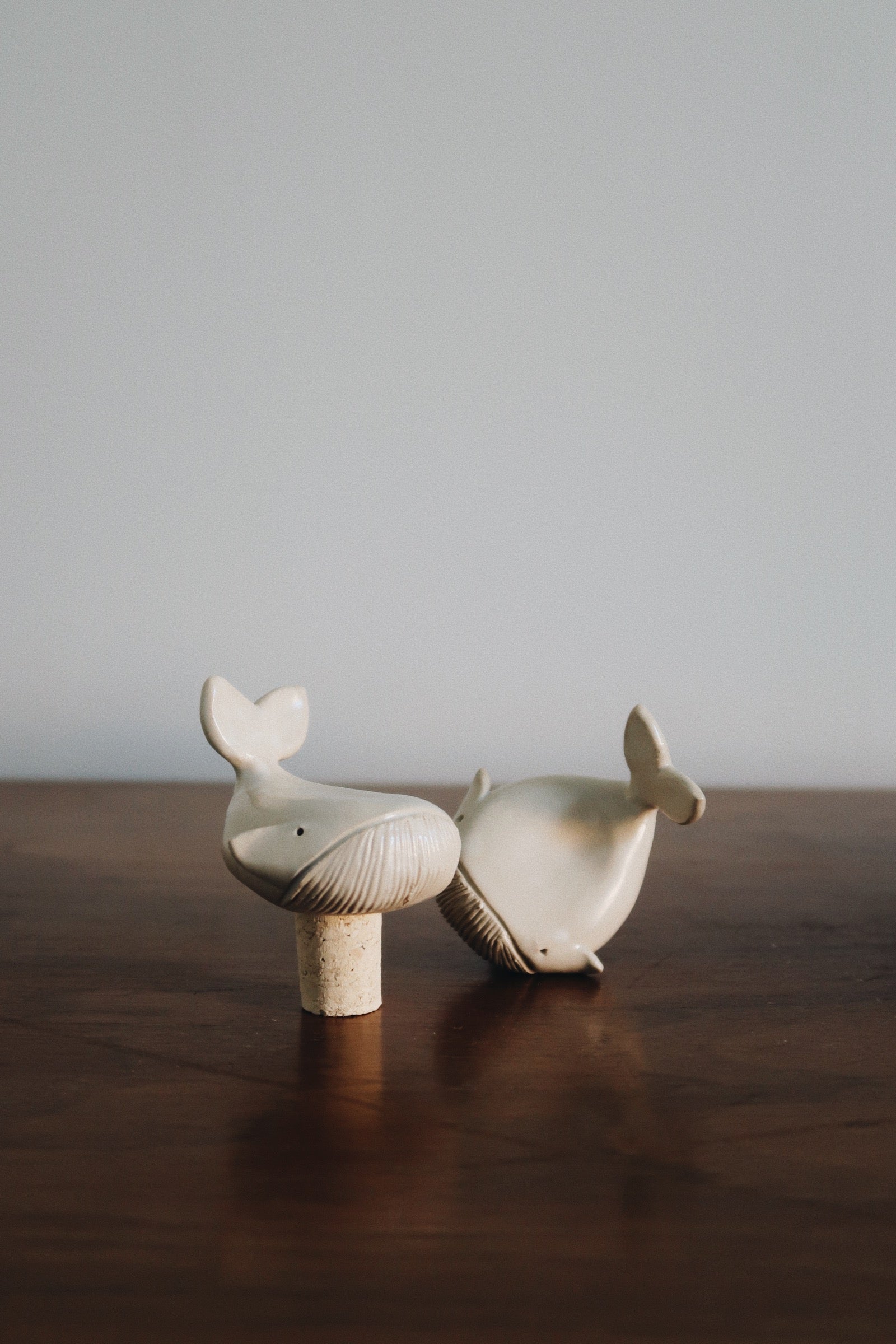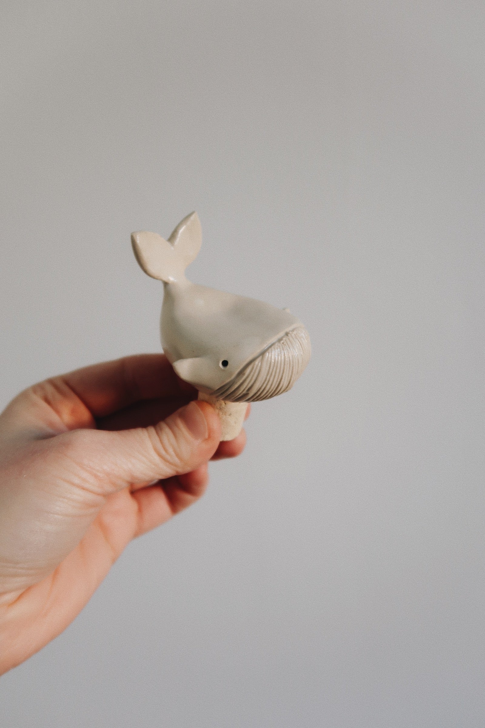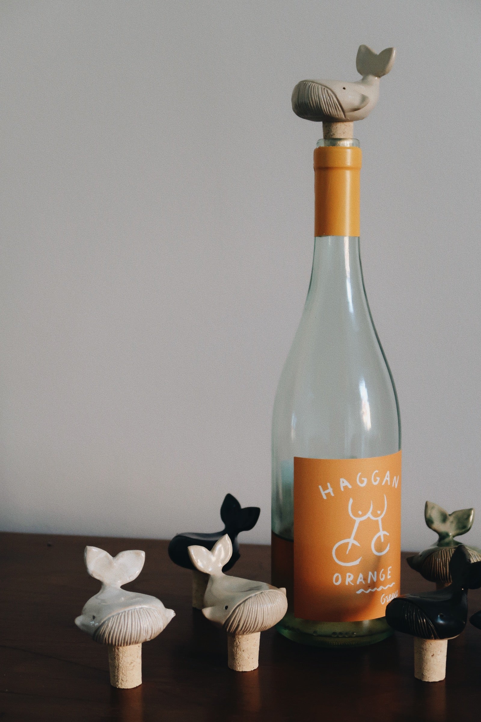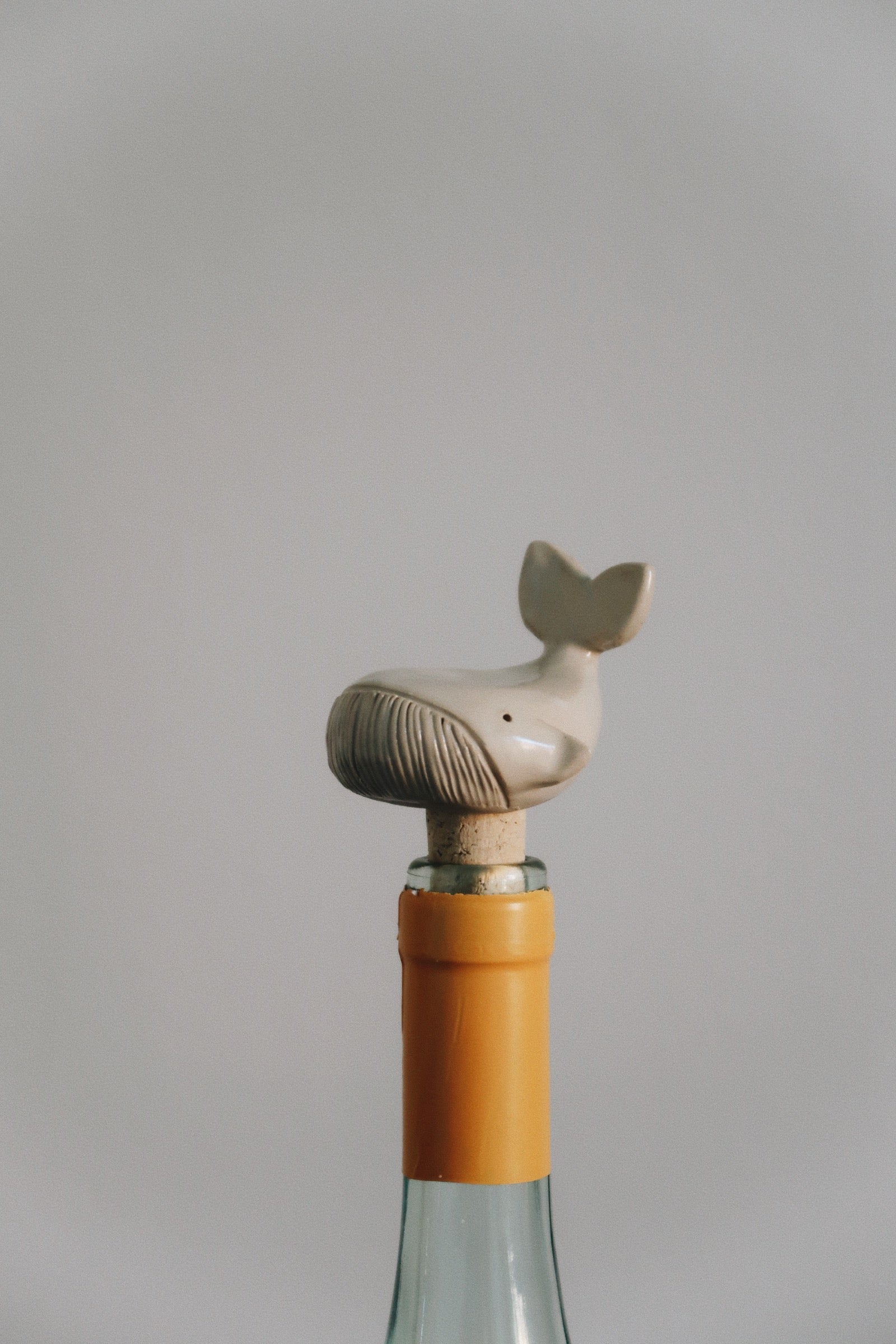 Små valar på kork för att återförsluta eller pryda en vinflaska.