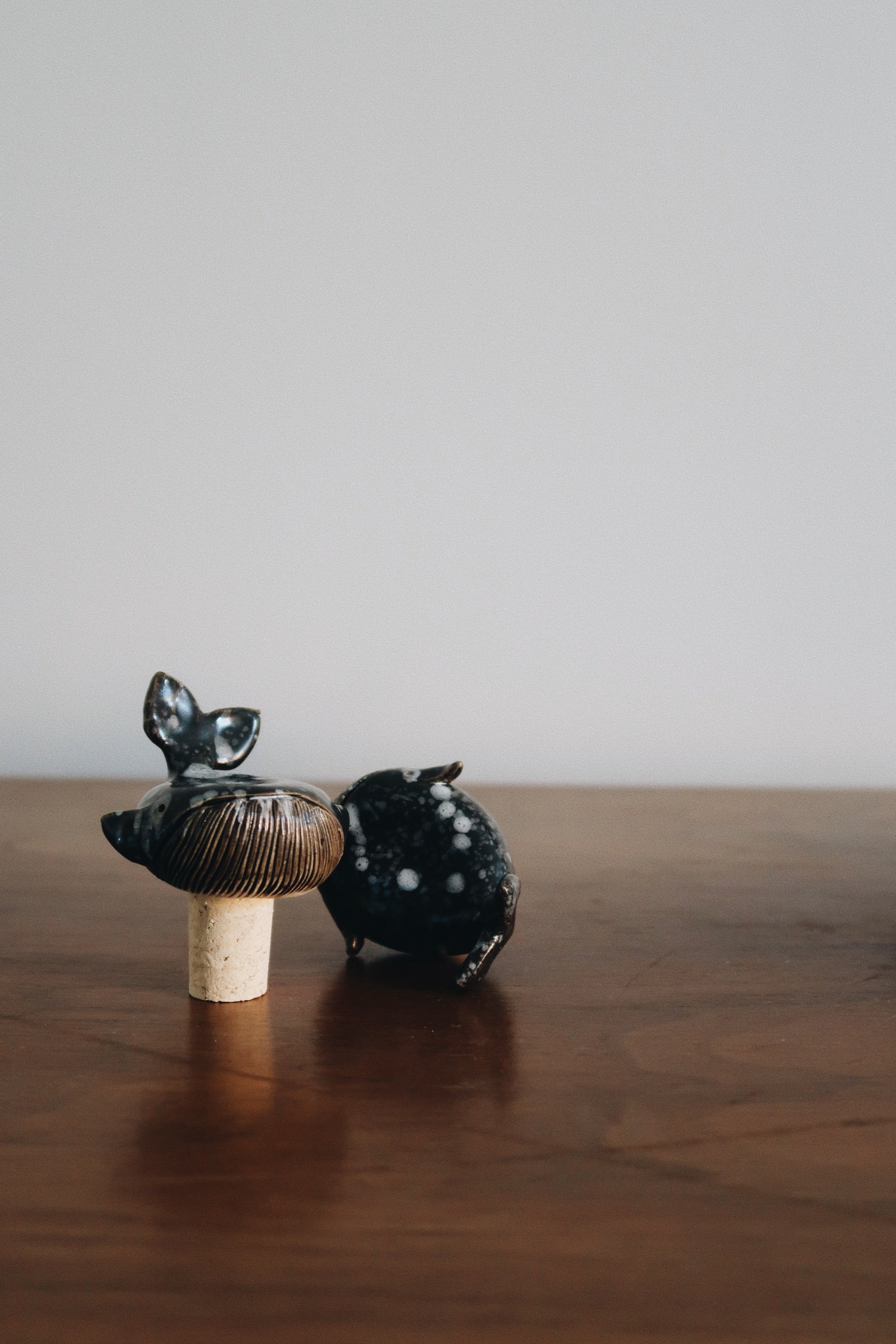 Små valar på kork för att återförsluta eller pryda en vinflaska.