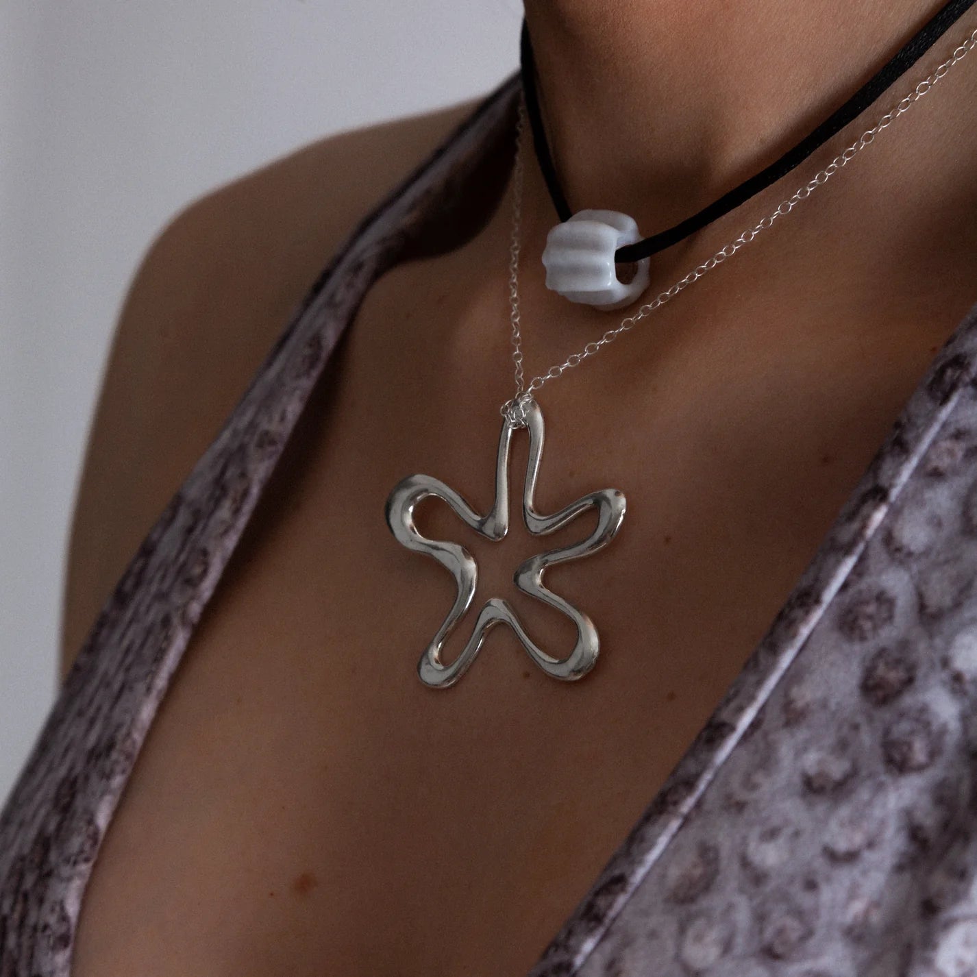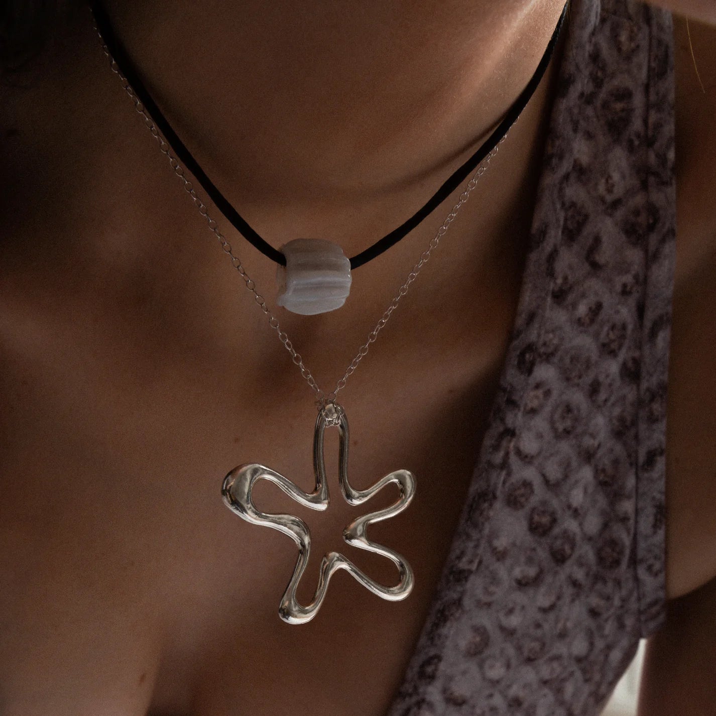 COSMIC FLOWER N°3-halsbandet från LAÔMA ATELIER är gjort av ett blomsterhänge på en liten kedja. Detta är ett handgjort och unikt statement-halsband som kommer att göra din stil mer personlig.