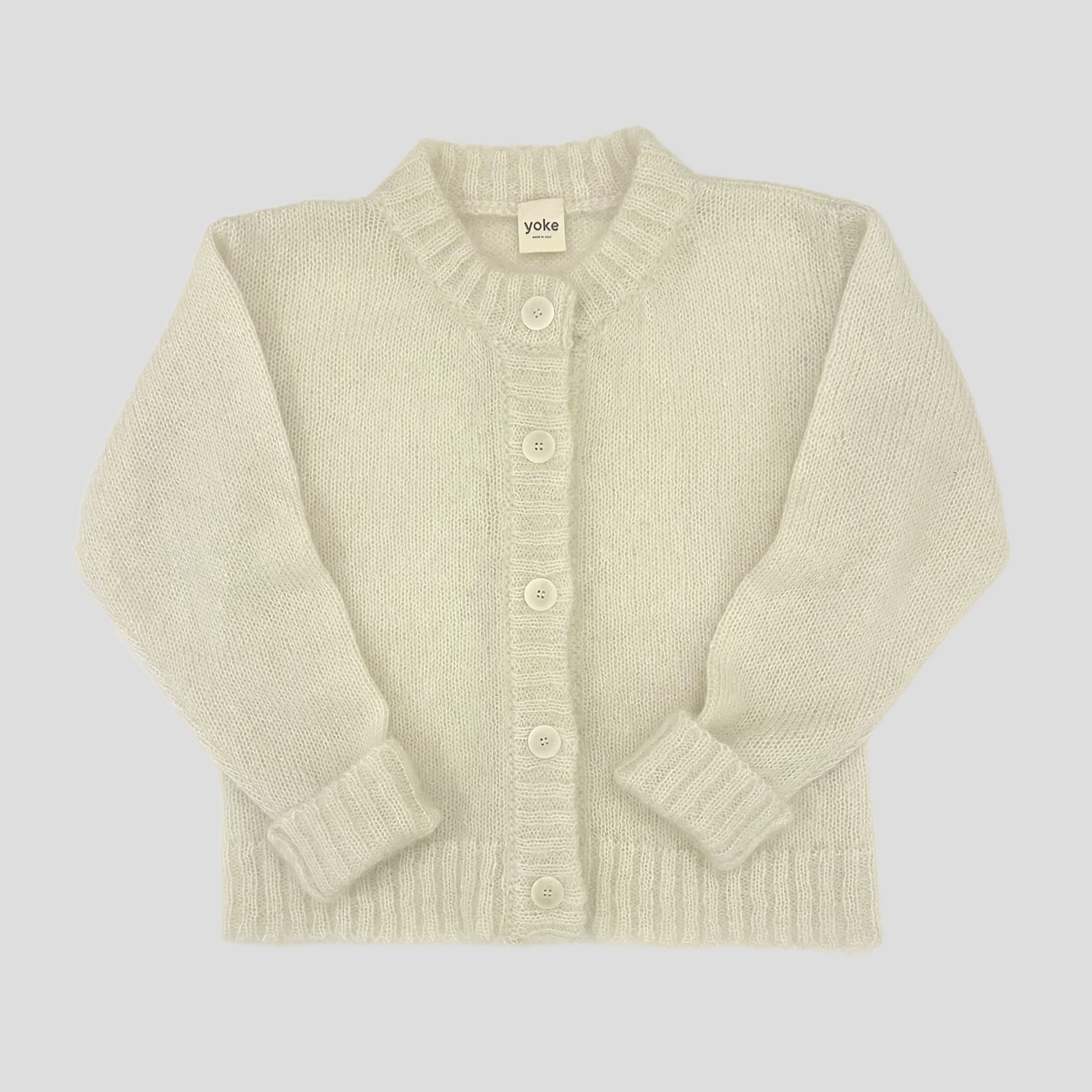 Supermjuk borstad Mohair och Mulberry Silk cremefärgad stickad cardigan, med en avslappnad crew-neck passform och knappfront. Detta lyxiga stickade plagg är andningsbart tack vare sin naturliga sammansättning, vilket håller dig sval på sommaren och varm på vintern. Den är designad för att vara könlös, se storleksguiden för mer information och här för mått.