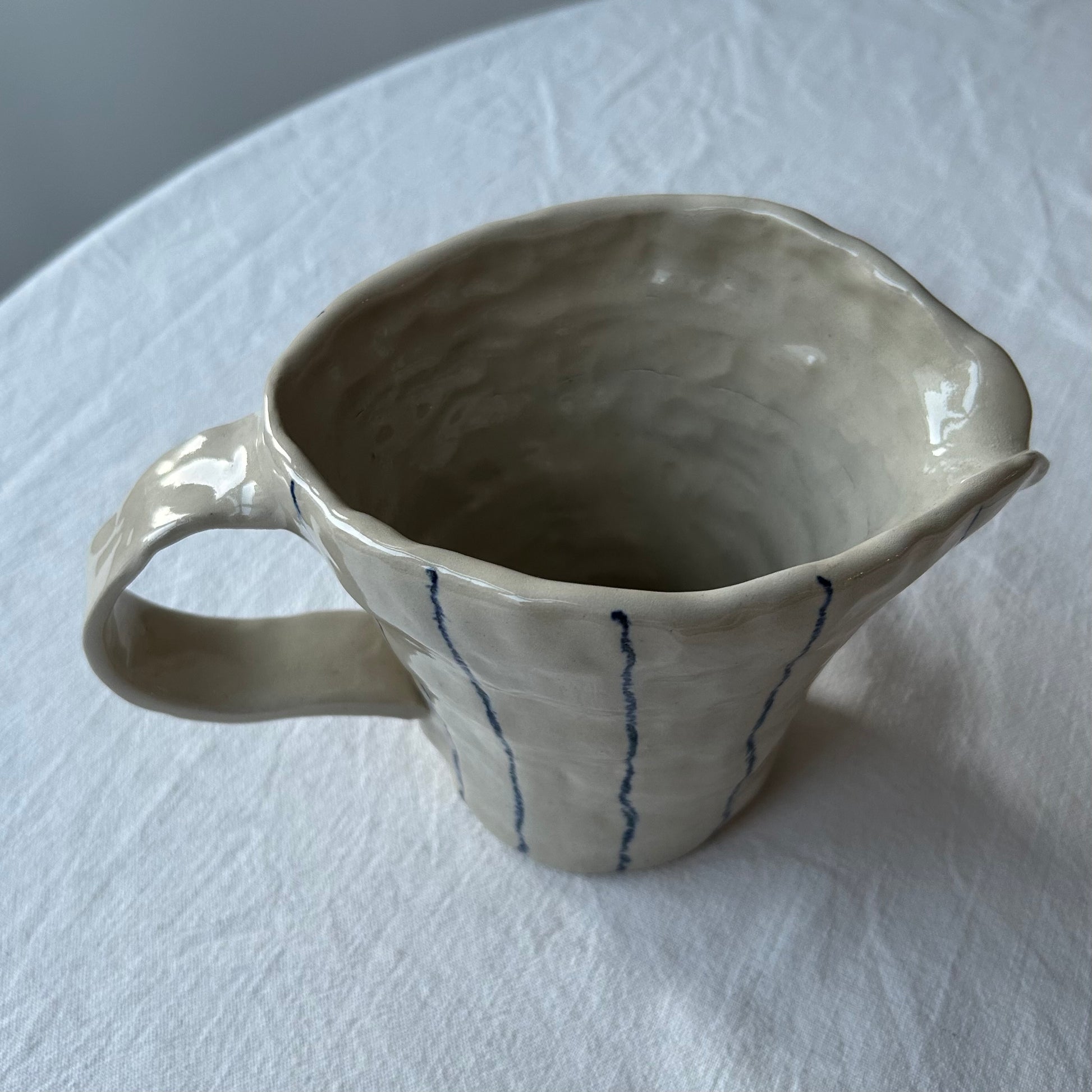 Handgjord keramik i stengodslera, målad med engobe och glaserad med en transparent glasyr.