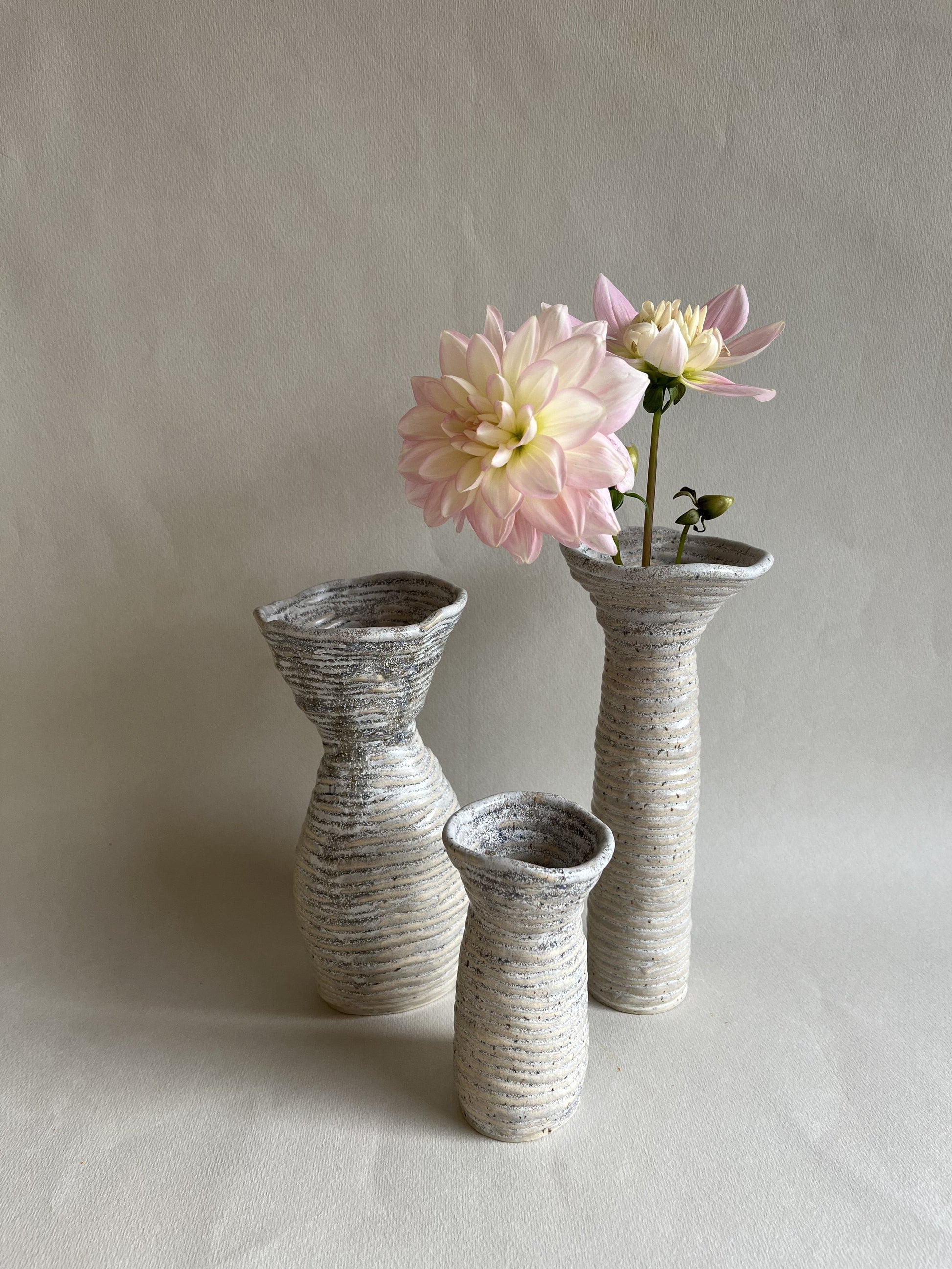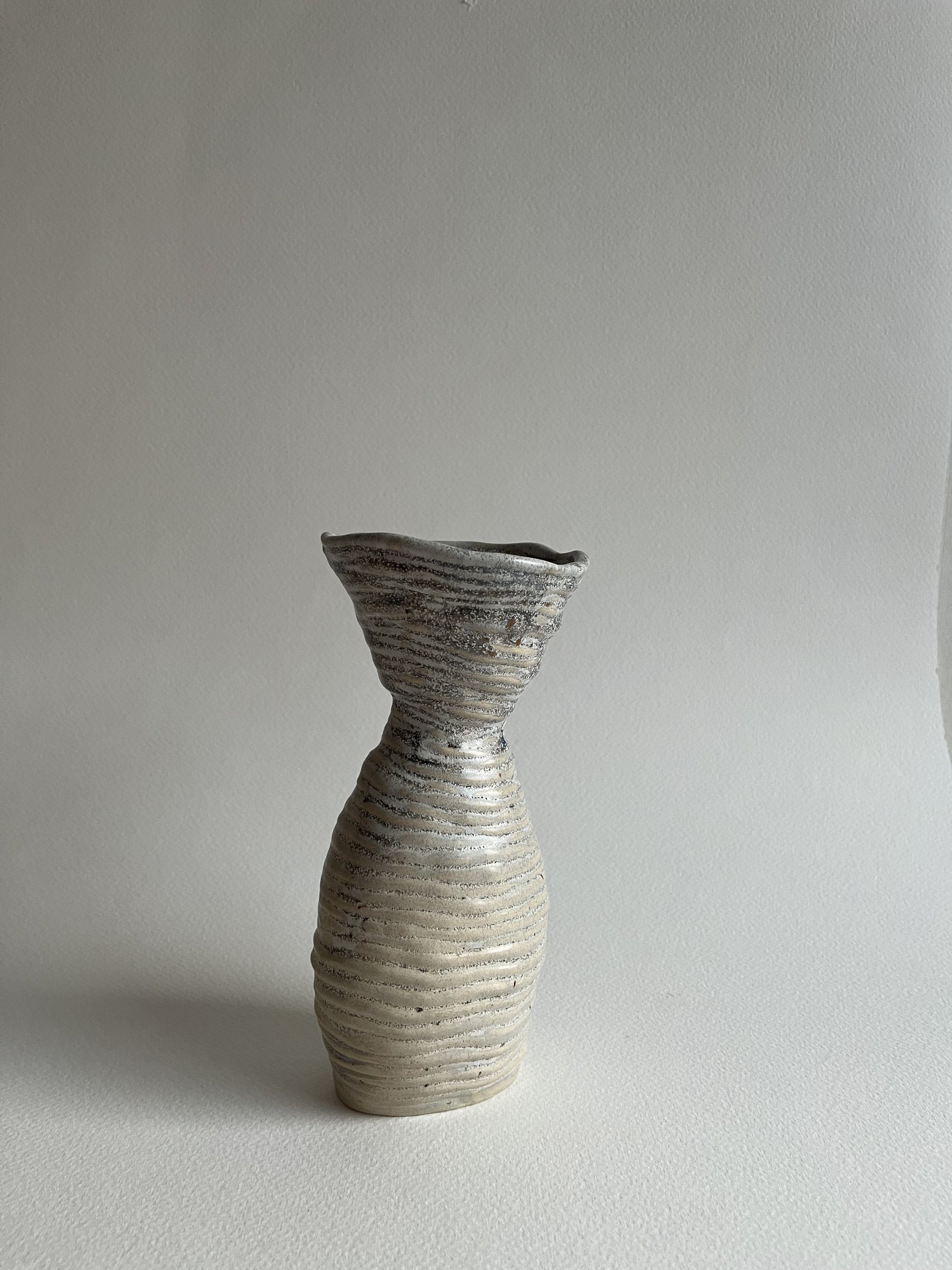 En handgjord keramikvas i neutral färg och unik form, gjord av duktiga Stilla Sinnet. Detta stiliga, tidlösa plagg är perfekt för att förvara blommor och för att lyfta din heminredning!