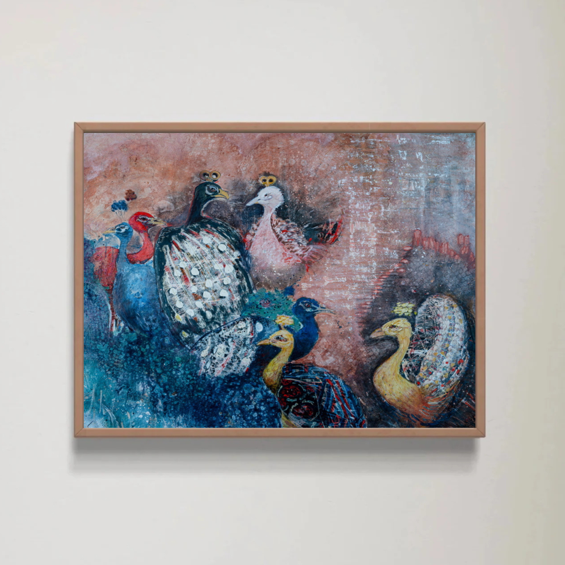 The Wedding var en samling fåglar helt födda ur min fantasi. Jag tillbringade mycket tid bland fåglar och älskade att observera deras rörelser och beteende, men jag målade dem aldrig när jag var med dem. Istället lät jag intrycken dröja sig kvar och återuppstå senare i färg. Mönstren och färgerna kom från minnet, formade av rytm och instinkt mer än realism.