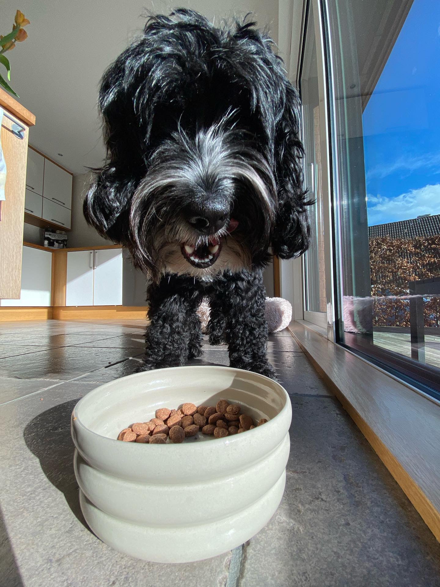 En unik, handgjord keramisk hundskål av Labbet Ceramics i en söt, bubblig form! Den perfekta skålen som kommer att ge färg och stil till ditt hem.