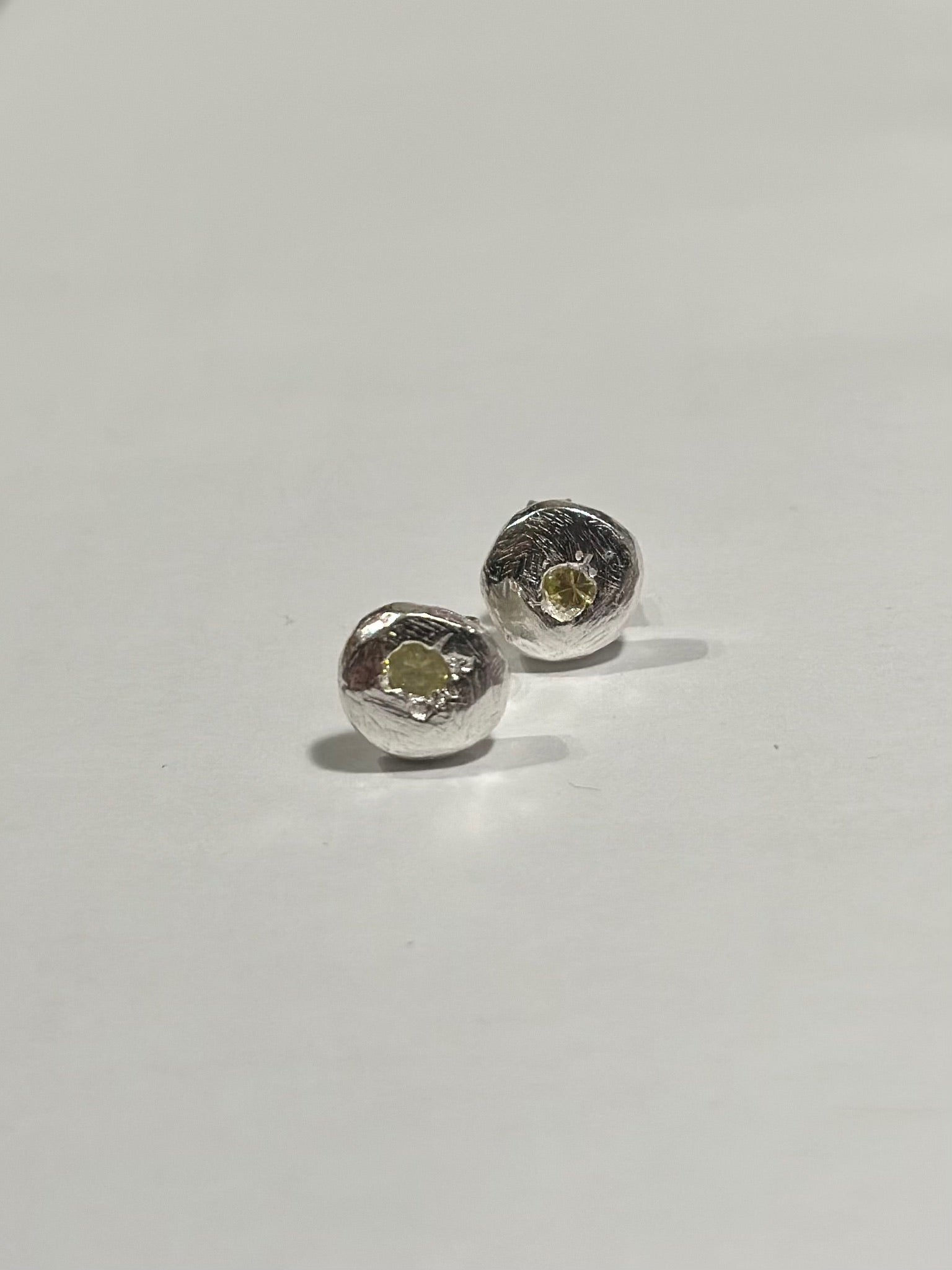 Örhängen i en organisk form, var och en med en ljusgrön sten. En accessoar som ger stil och personlighet.