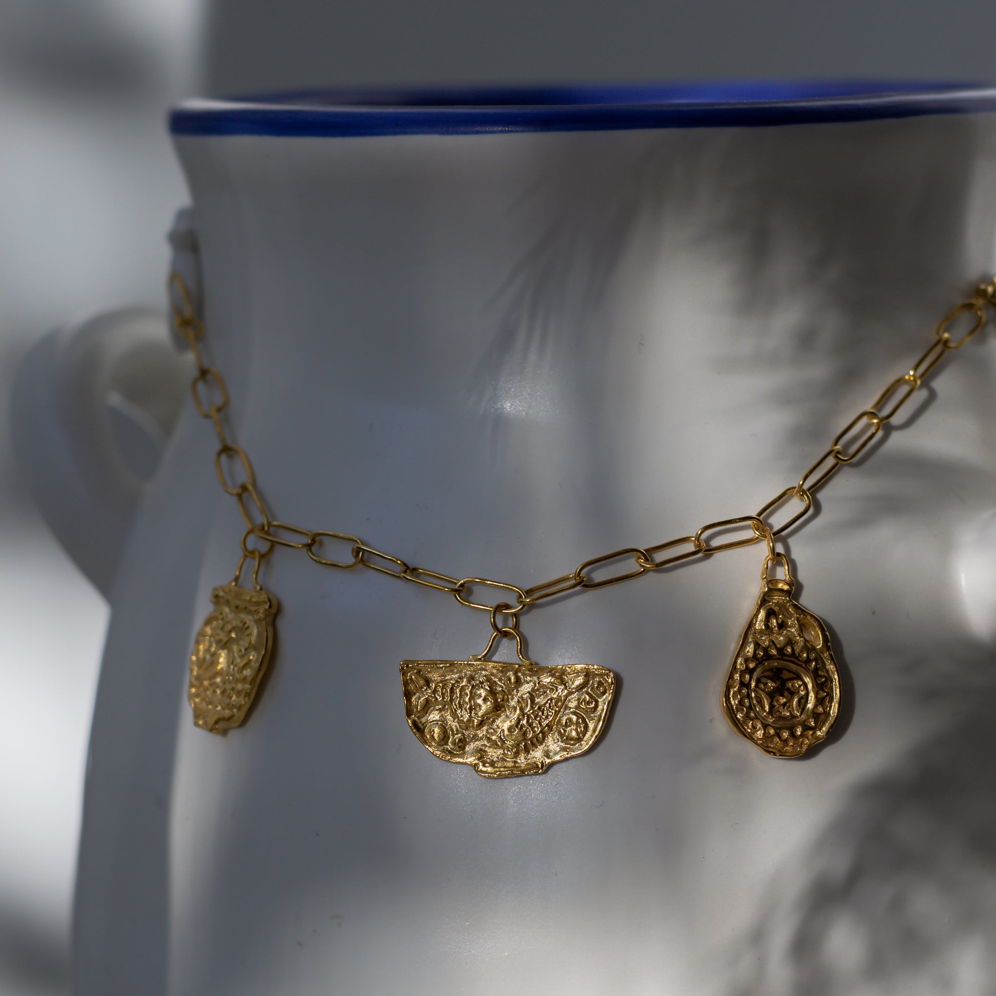 Ezo Charms skapades utifrån originalteckningarna av Bianka Parázs, keramikdesignern bakom Parbiart. Därefter handkarvades varje bit i vax av Pezi och fick slutligen sin form genom en av de äldsta kända smyckesteknikerna – vaxgjutning.