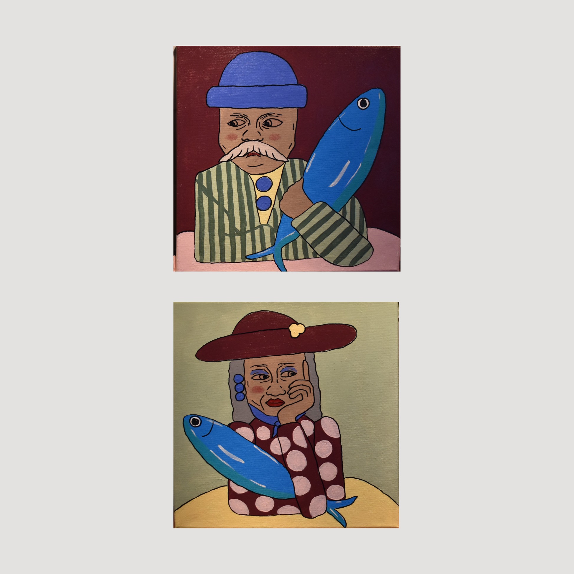 Två själsfränder på två målningar, inspirerade av mina älskade morföräldrar.