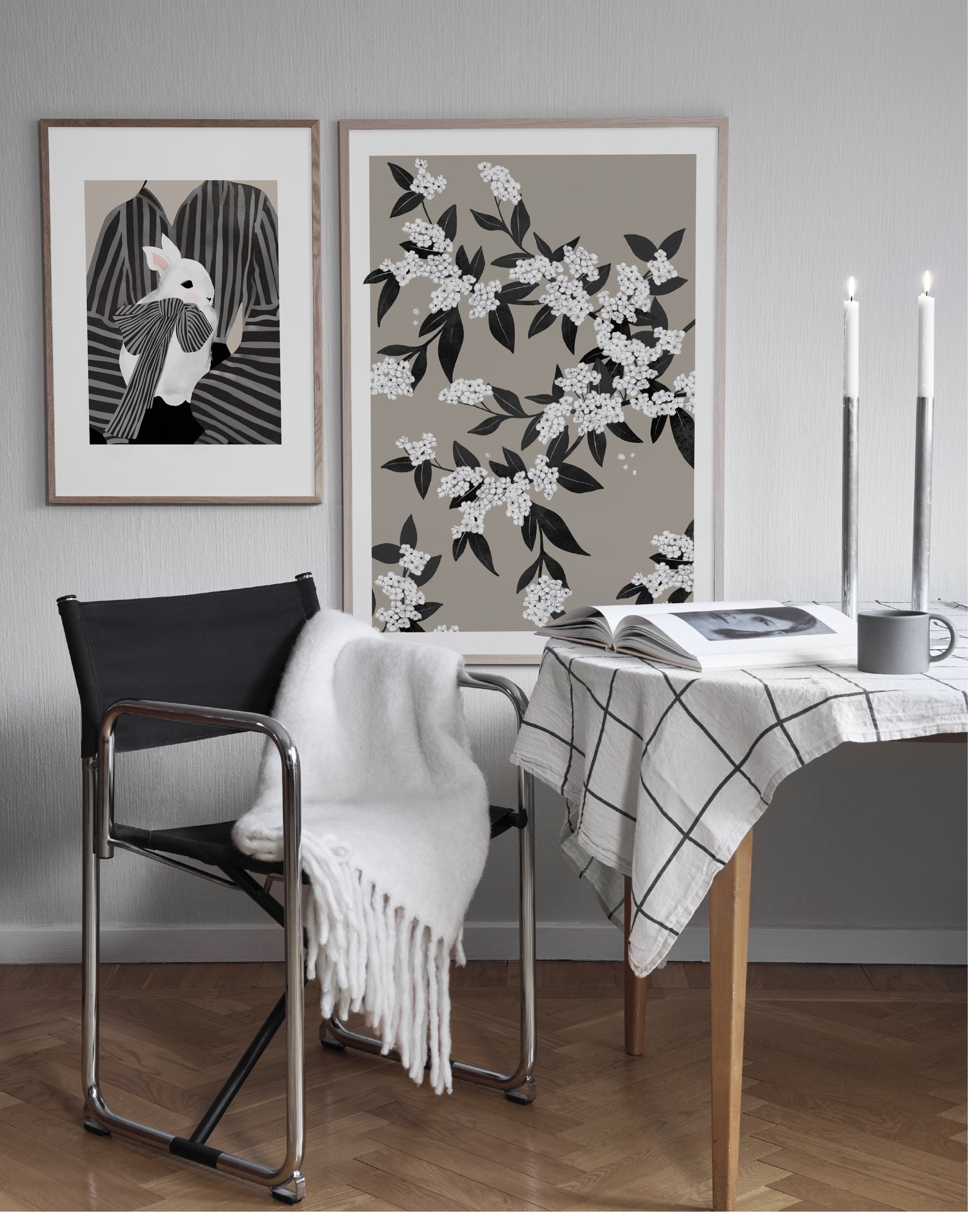 Varje print är handsignerad, vilket ger varje exemplar en unik och personlig prägel. Perfekt för minimalistiska, skandinaviska eller monokroma inredningsstilar – “Fleurs” tillför ett sofistikerat uttryck till ditt hem.