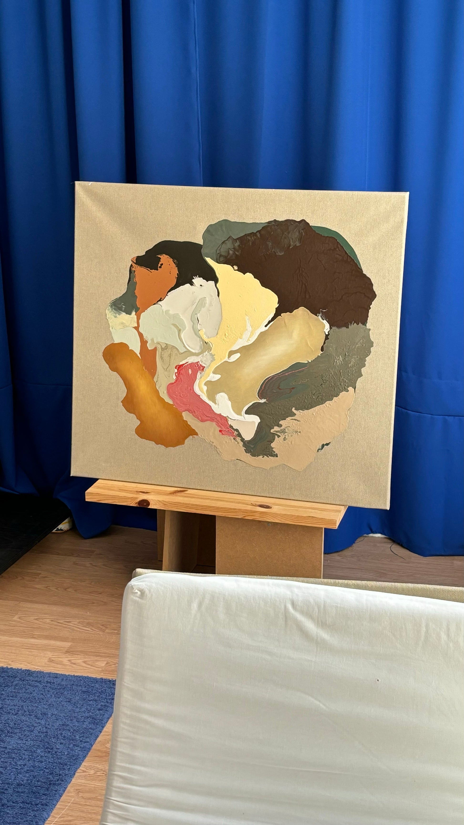"Floating Colors" är en kollektion som speglar Elins djupa utforskande av färgrelationer, uttryckt genom en serie organiska, flytande former i akryl och olja på duk. Inspirerad av vattnets och vågornas ständigt föränderliga rörelser påverkas verken av hennes omgivning—en flytande ateljé ombord på ett historiskt skepp i hjärtat av Stockholm, där hon även bor.