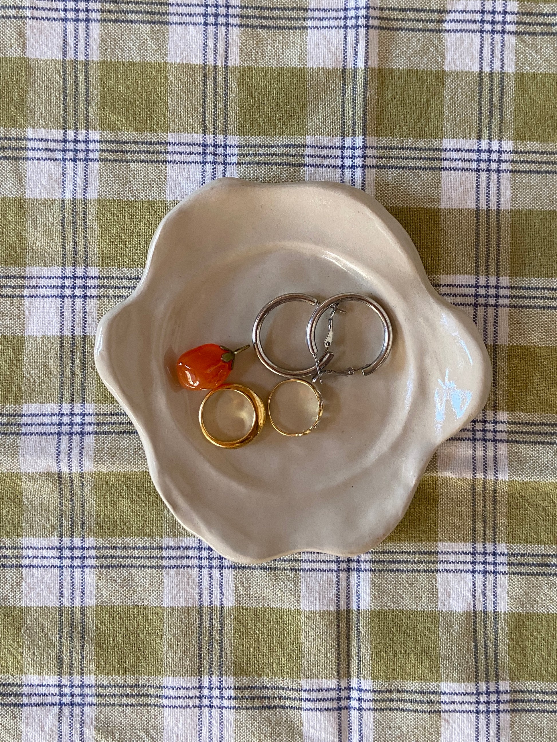 Gör din dukning mer lekfull, unik och stilfull med denna handgjorda, blomformade tallrik från Tahkamik! Den kan såklart även användas till saker som att förvara smycken. Den perfekta inredningen för det skandinaviska hemmet.