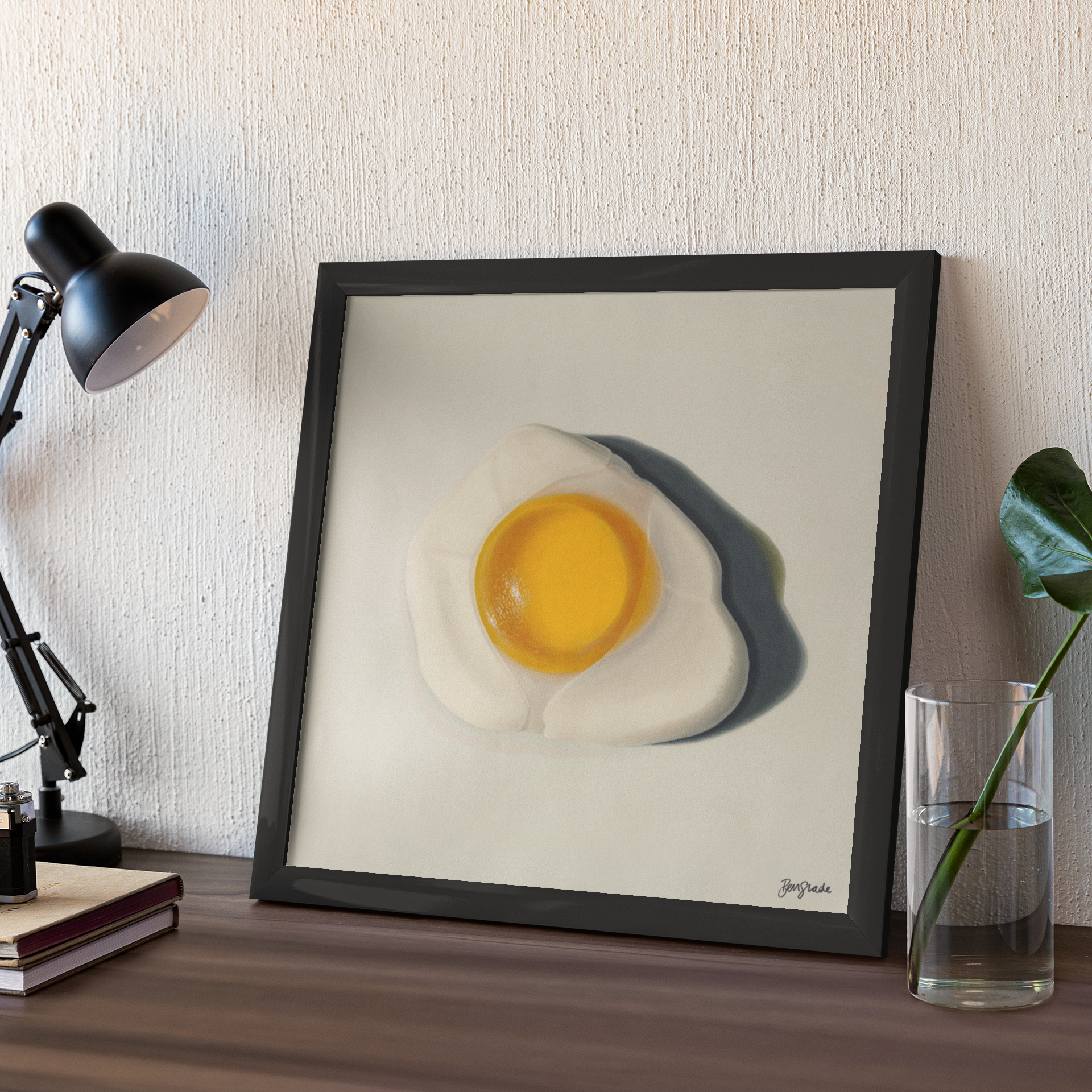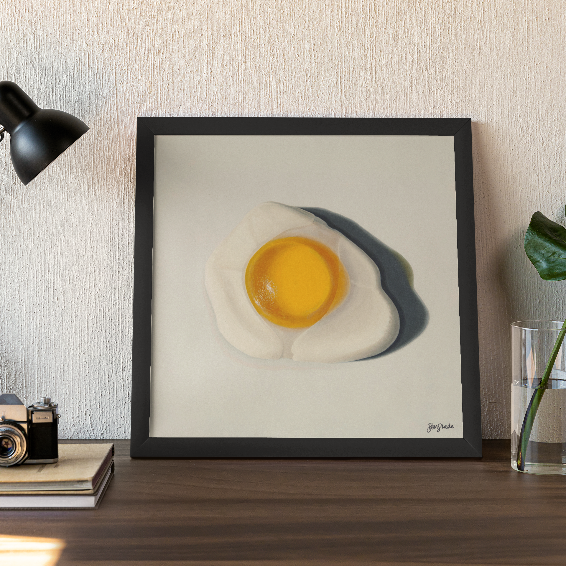 Tryckt reproduktion av det ursprungliga akrylkonstverket "Fried Egg" av Ben Slade.