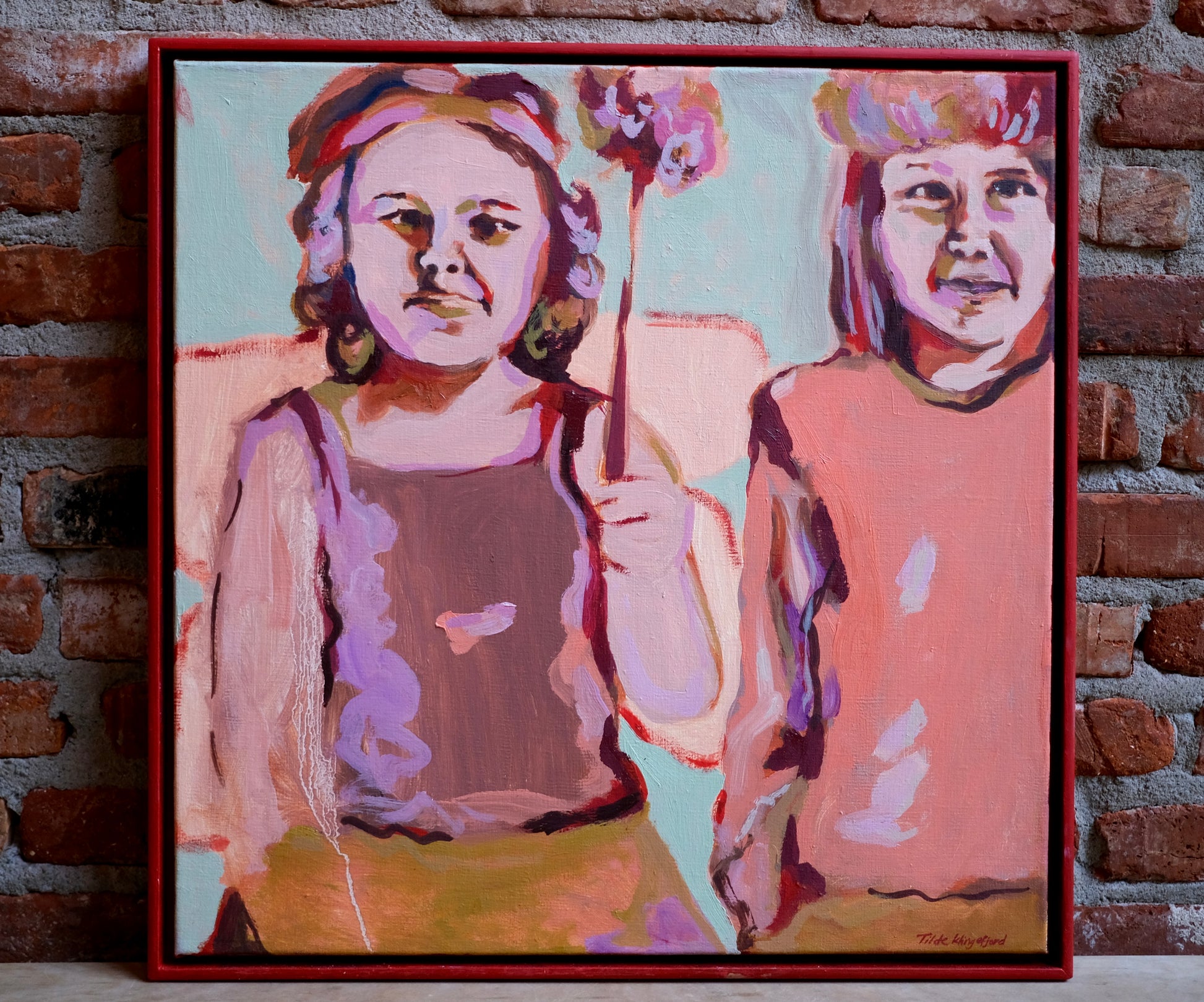 En oljemålning i rosa toner. En snäll fé hörde min önskan – jag fann en vän för livet! Denna dekorativa tavla är perfekt för ett barnrum och väcker barndomsminnen fyllda av glädje, skratt och magi.