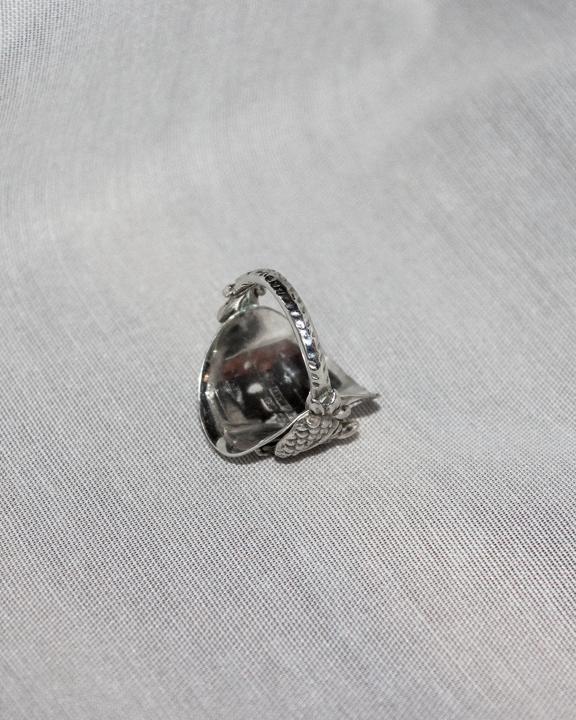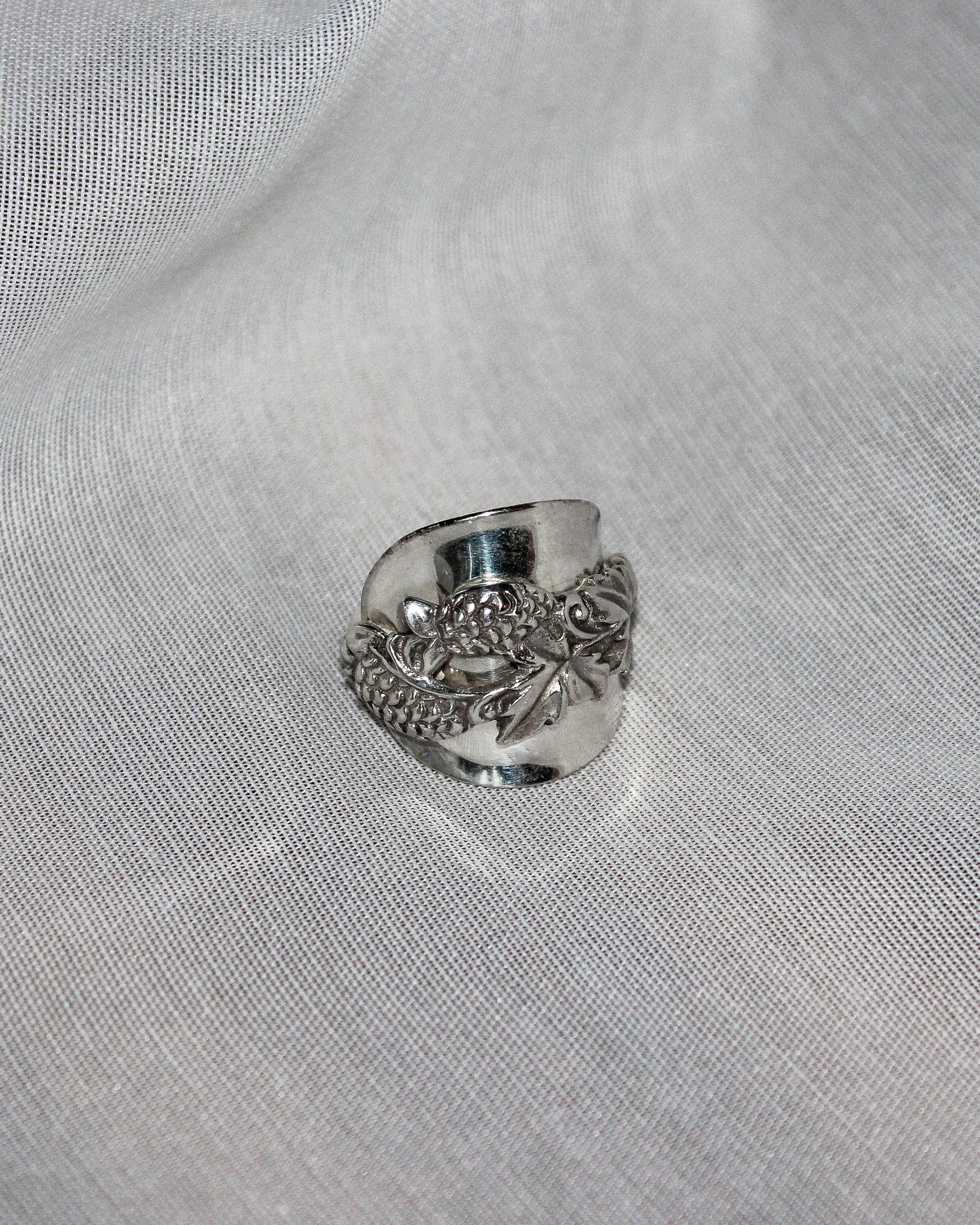 Kollektionen Floran består av smycken med diverse blommor som motiv. Alla smycken är helt tillverkade i silver, vilket gör dem både hållbara och vattentåliga. GITTAN RING är i storlek 17 och har lite hårdare blad och som små ananaser på sig, passar perfekt för dig som vill bära något både vackert och tidlöst.
