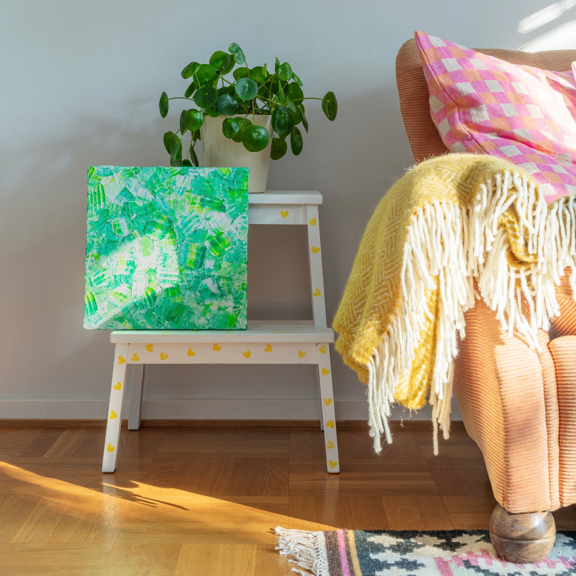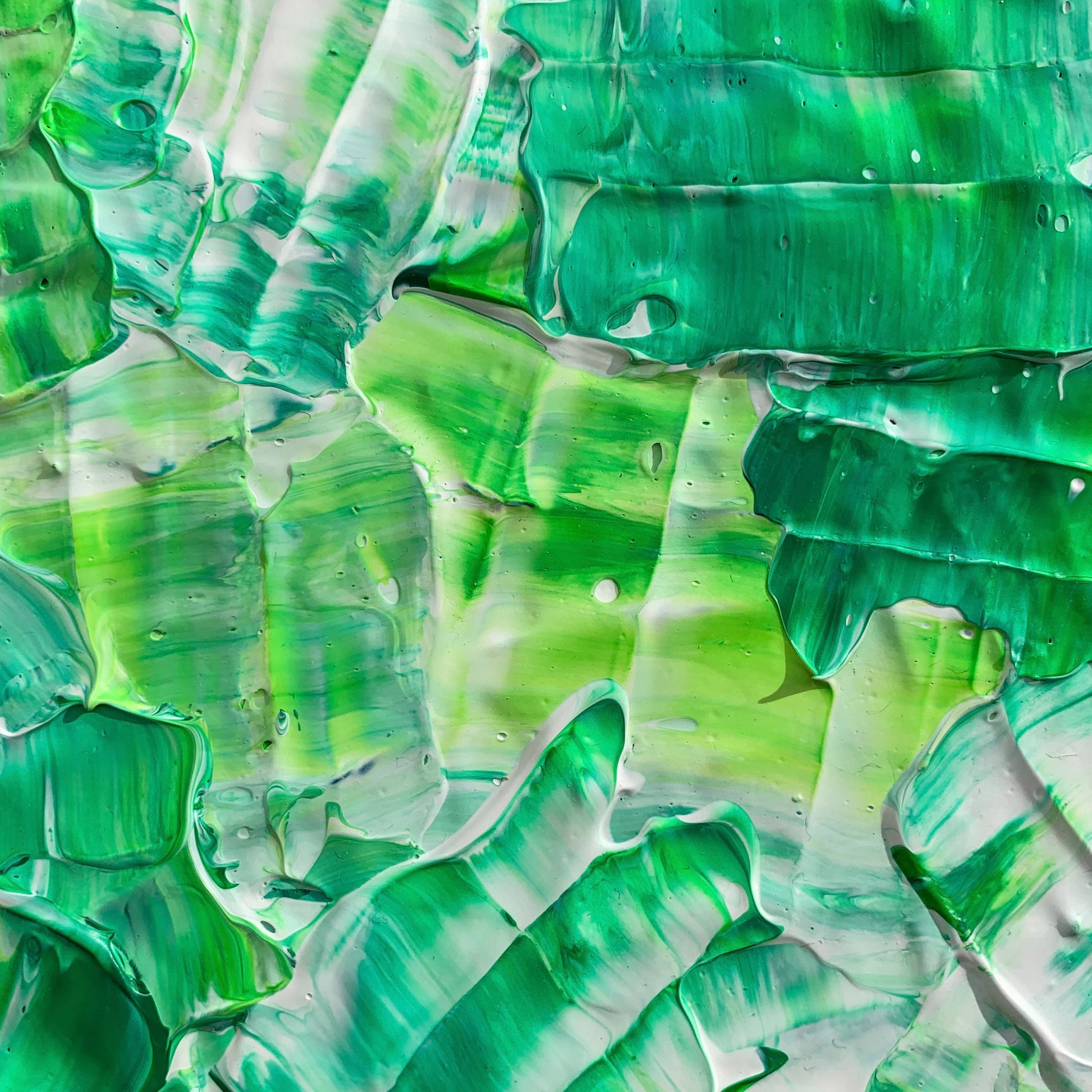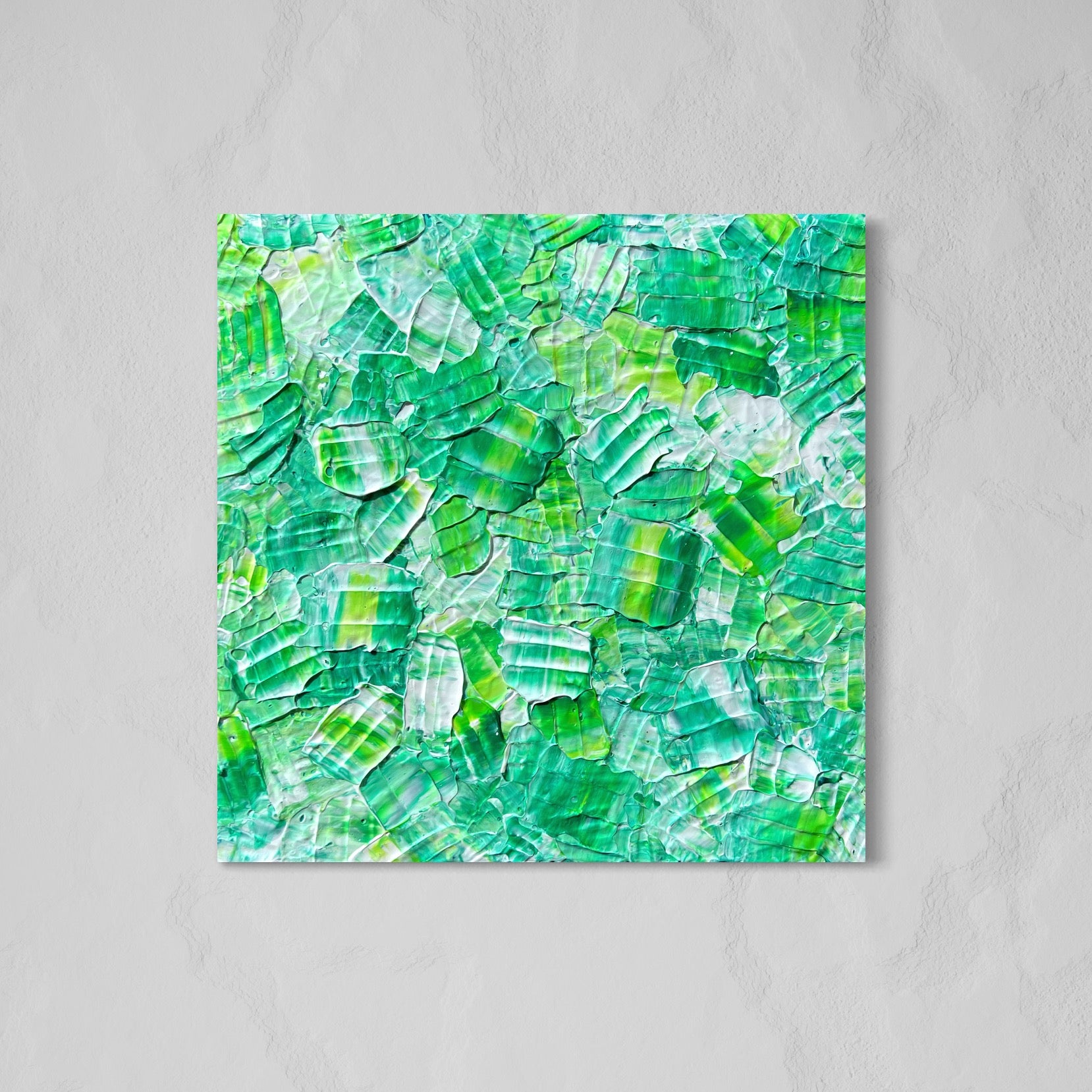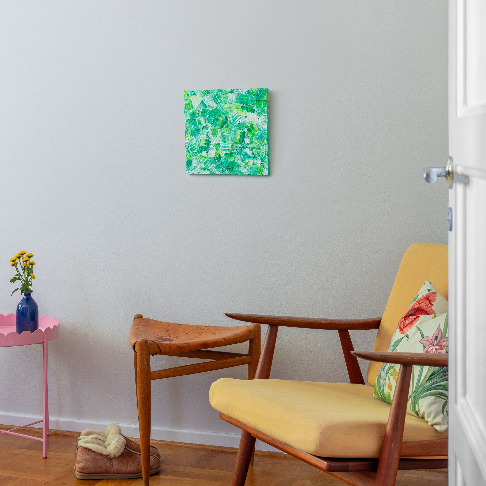 Grön Blobmob visar upp Klara Collins signaturblobbar i gröna nyanser. Som ett hav av löv eller det klara skenet från träd på våren, är detta verk perfekt för naturälskare som vill föra in den fräscha vårkänslan i sina hem.
