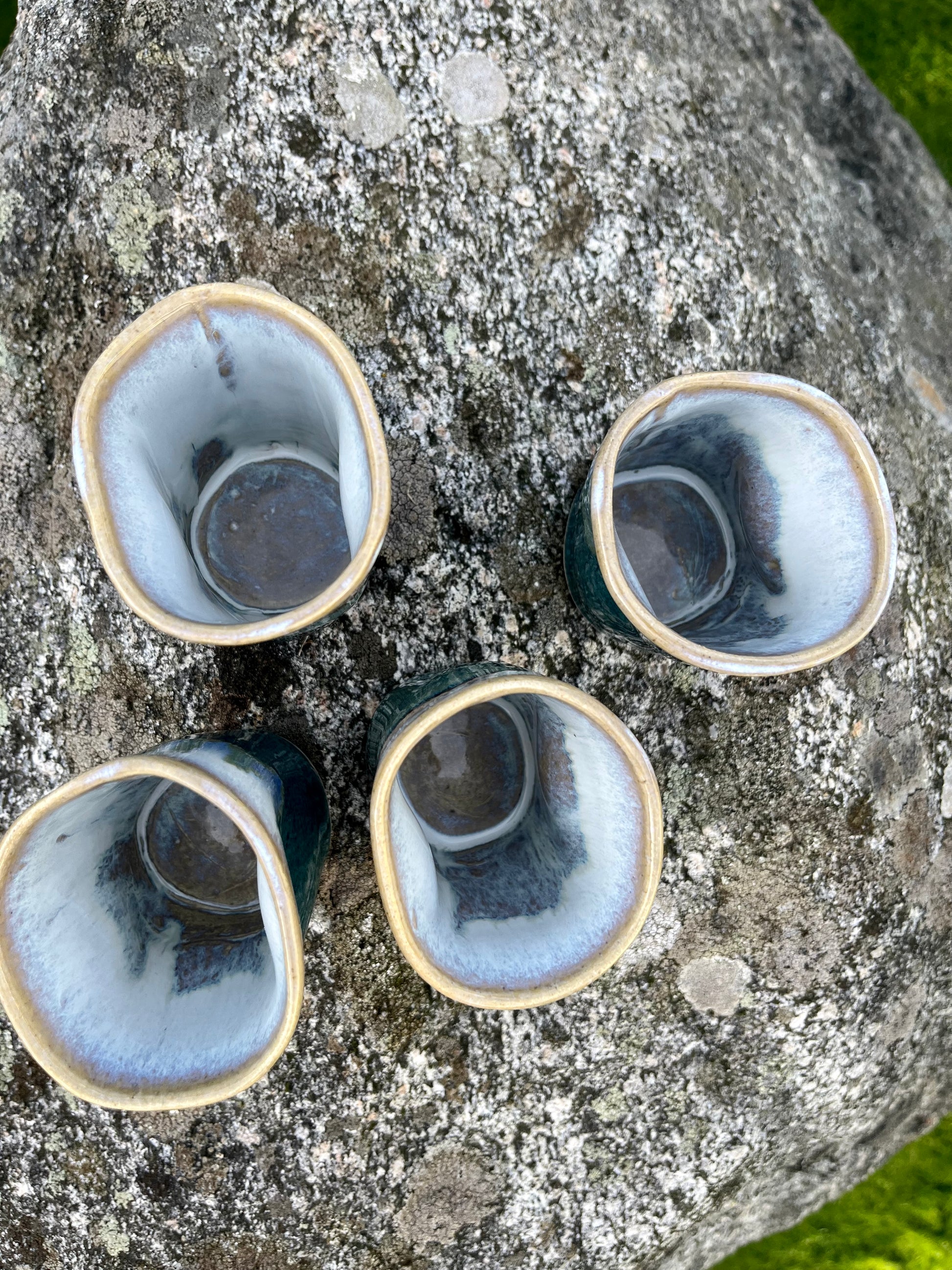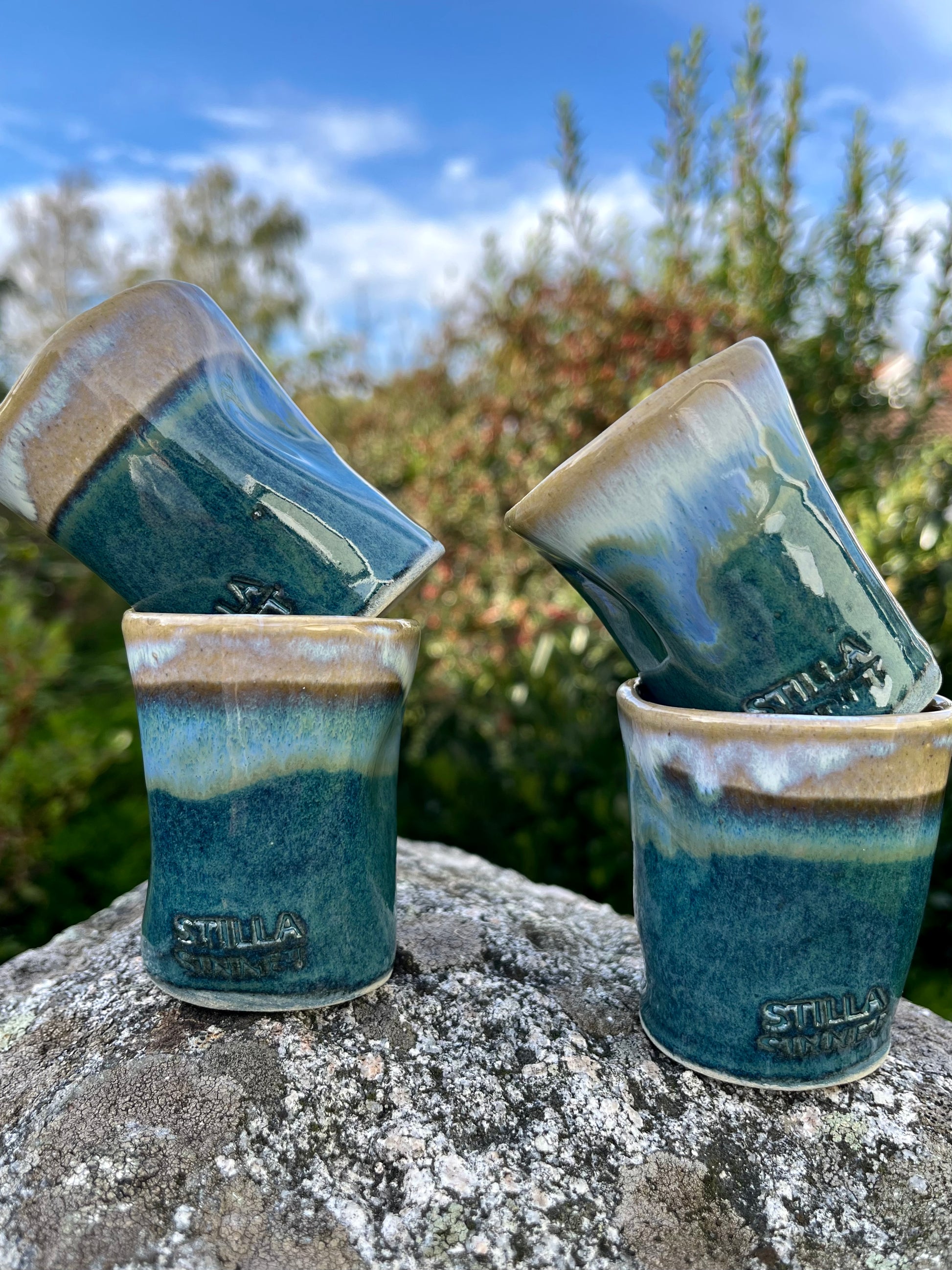 En handgjord keramikkopp i en blå färg och unik form, skapad av den talangfulla Stilla Sinnet. Denna snygga, tidlösa produkt är perfekt för att dricka ur och för att ge ditt kök ett lyft!
