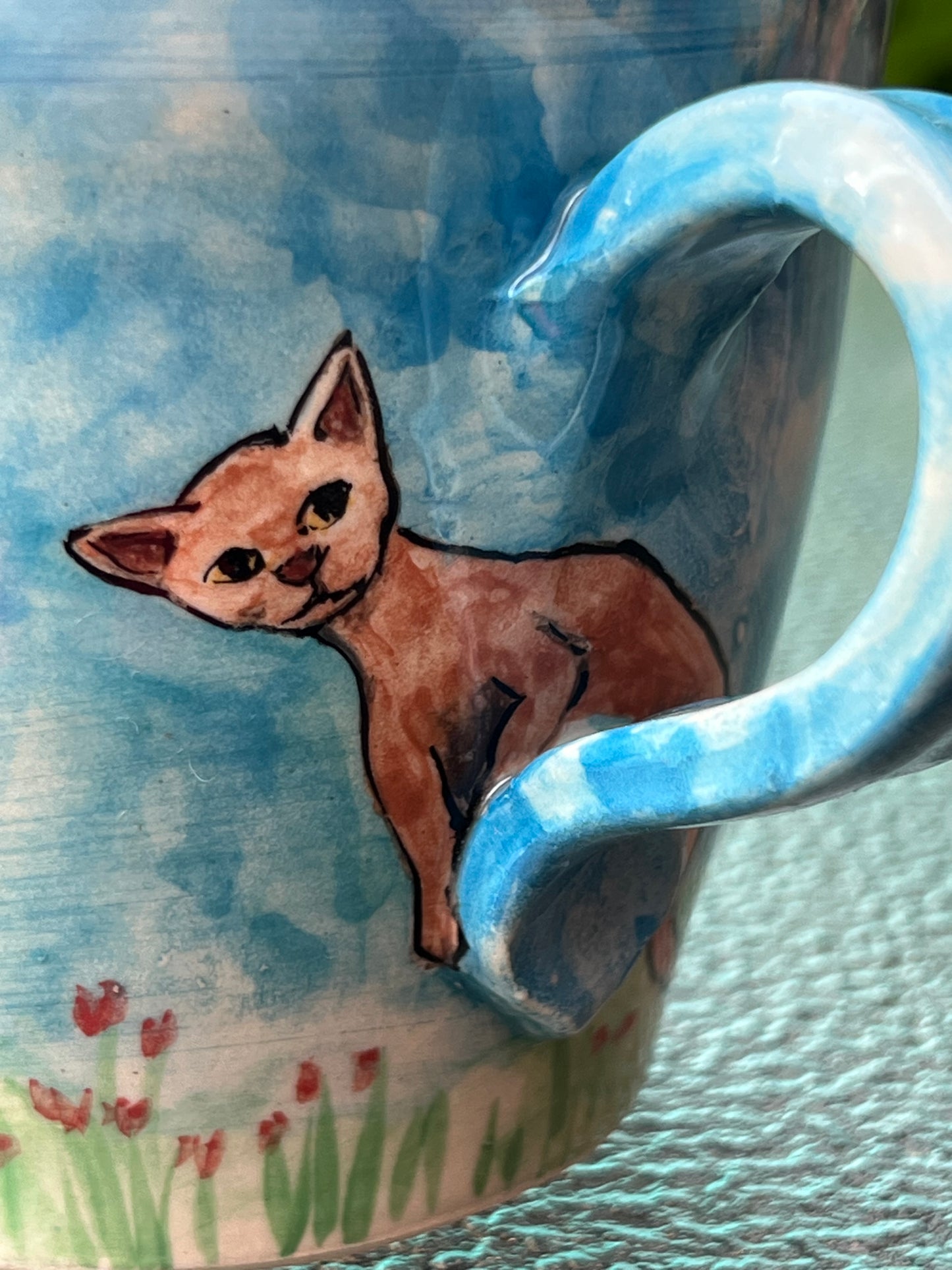 Perfekt för kattälskare och samlare av handgjord keramik, denna mugg tillför en touch av lekfullhet och konstnärlighet till dina vardagsritualer.