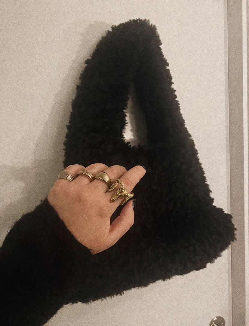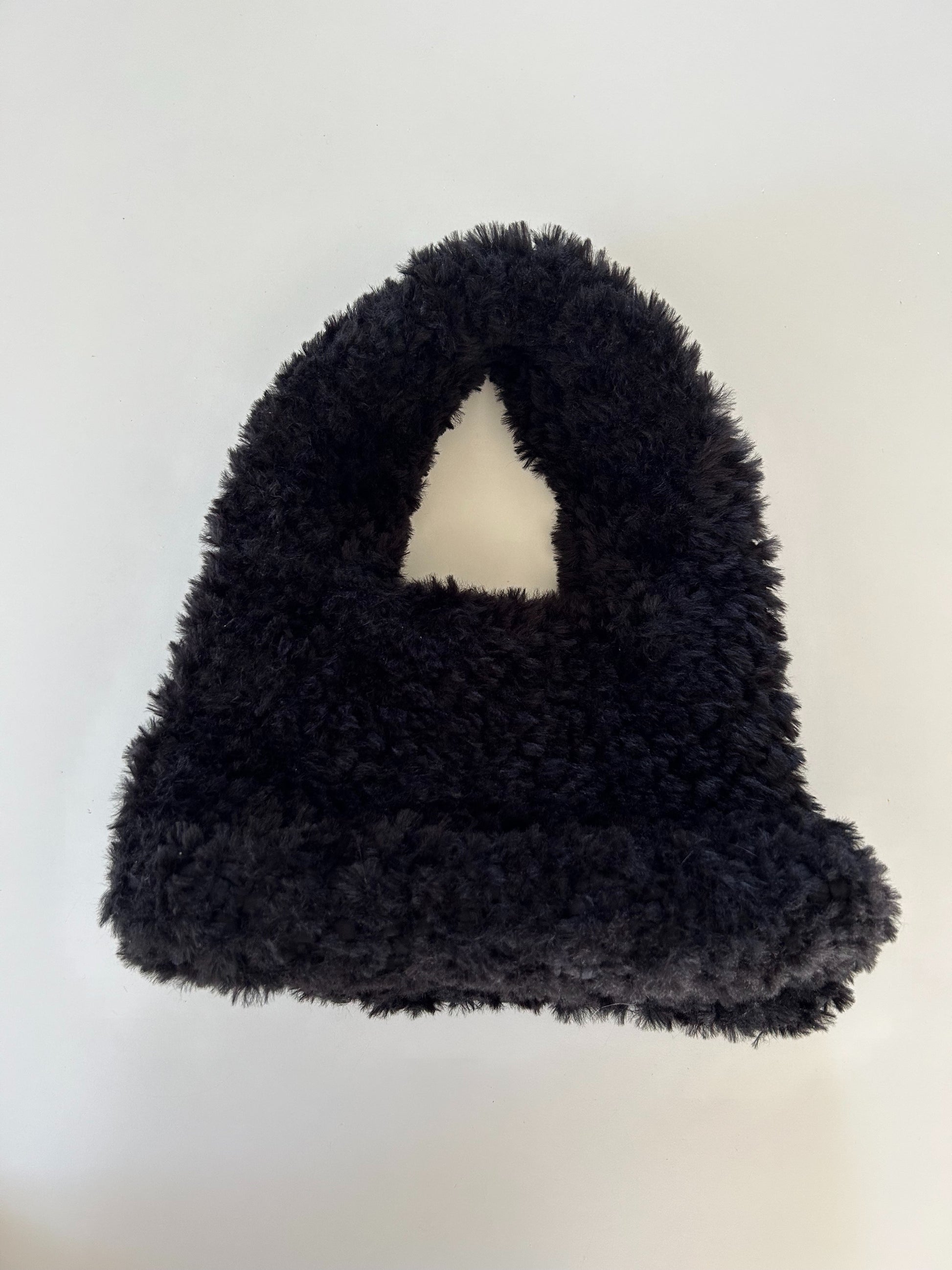 En unik, svart och fluffig virkad väska som är perfekt för att bära dina vardagliga saker i - handgjord av designern The clarity way of life. Bär den på axeln eller bär den i handen och gör dina outfits mer personliga och snygga på samma gång!