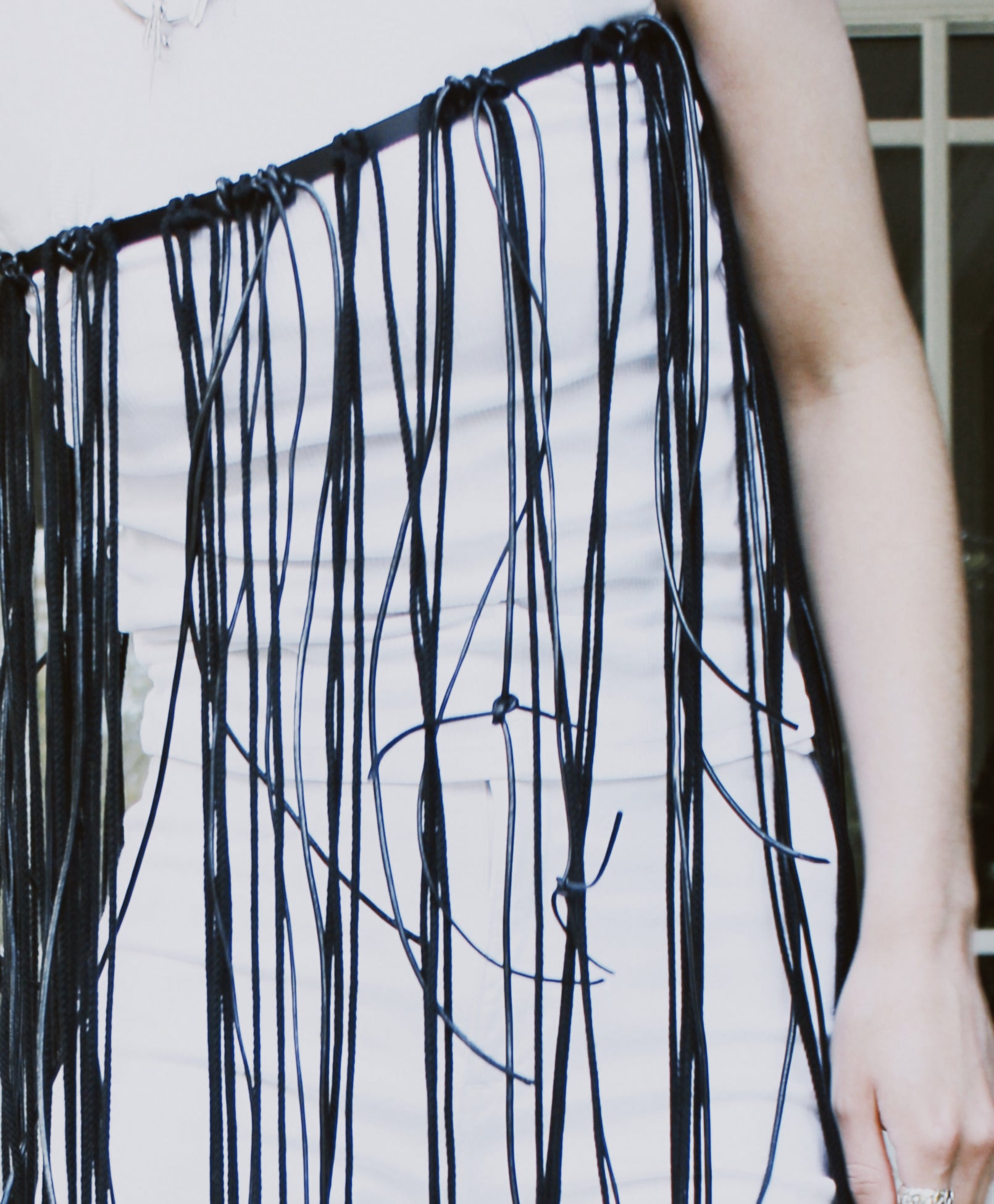KNOTS HARNESS är en handknuten kroppsaccessoar tillverkad av blandade material. Bältet, precis som livet, rör sig med dig och förbättrar varje look. Knutarna dyker upp på olika längder, och symboliserar förmågan att välja nya vägar längs resan.