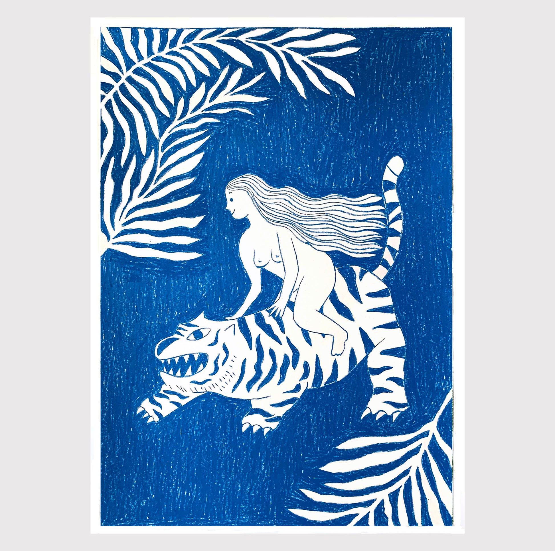 Originalmålning, skapad med oljepasteller i blått på 250g Materica-papper.