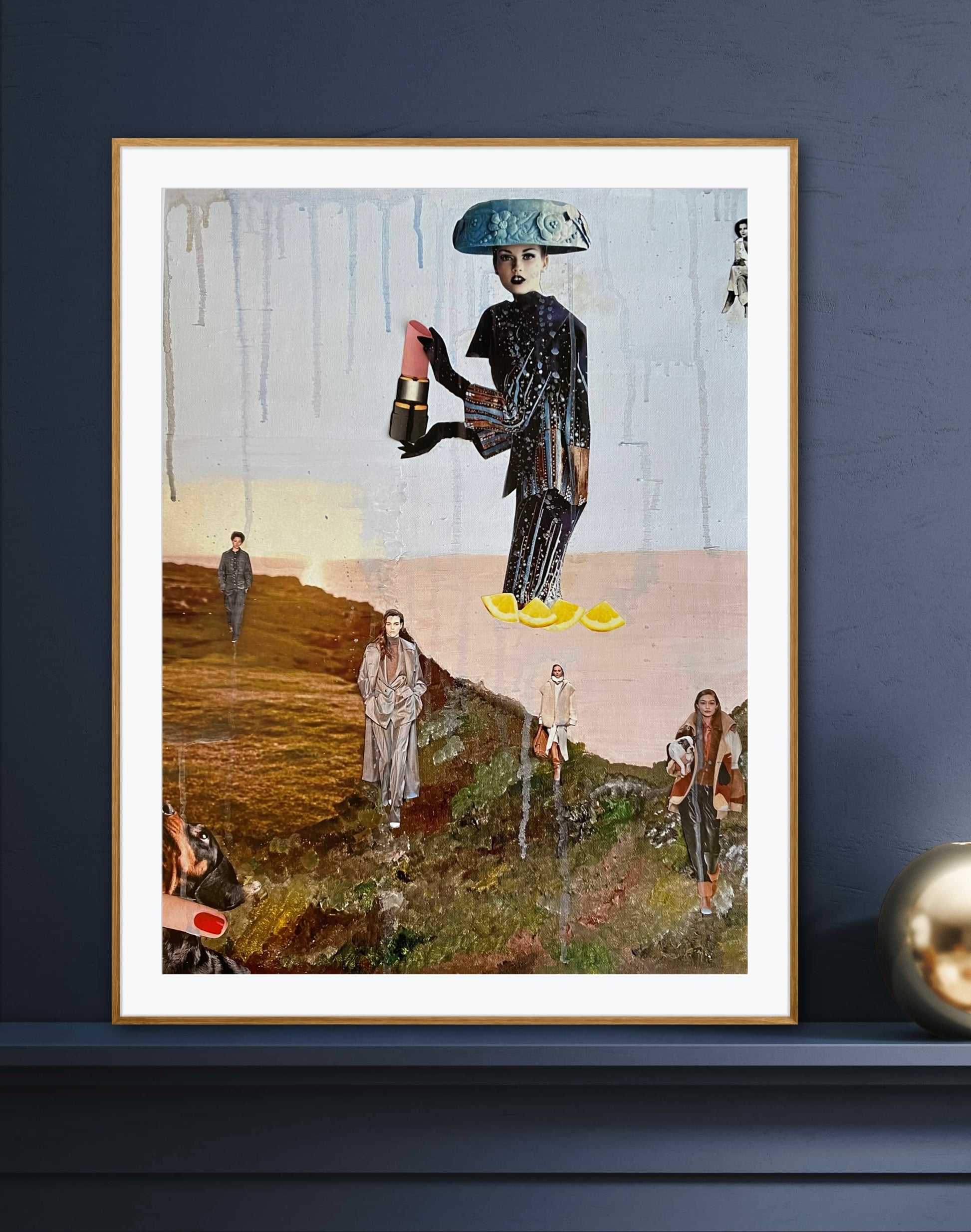 Ge ditt hem en dos av djärv kreativitet med “Look” – ett fantasifullt konstverk av Emma Lisnell. Detta unika verk kombinerar akrylmålning och urklipp från tidningar för att skapa en slående, modemedveten komposition. Blandningen av texturer och tekniker resulterar i ett fängslande konstverk som tillför färg, personlighet och modern stil till din inredning.