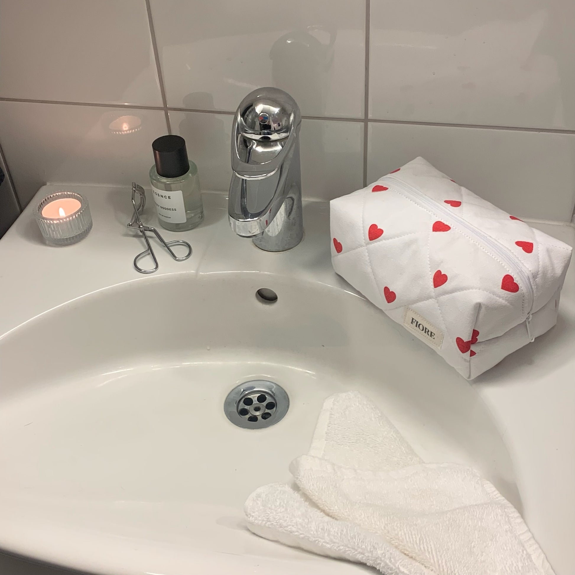 Handgjord sminkväska i storlek small. Denna sminkväska kommer att vara din vardagsbästis att ta med till varje tillfälle. Designad för att passa dina dagliga hudvårds- eller sminkprodukter, samtidigt som den är en söt accessoar till din look. Alla våra produkter är handgjorda i Sverige av 100 % återbruket tyg. Detta gör din sminkväska unik samtidigt som den är miljövänlig.