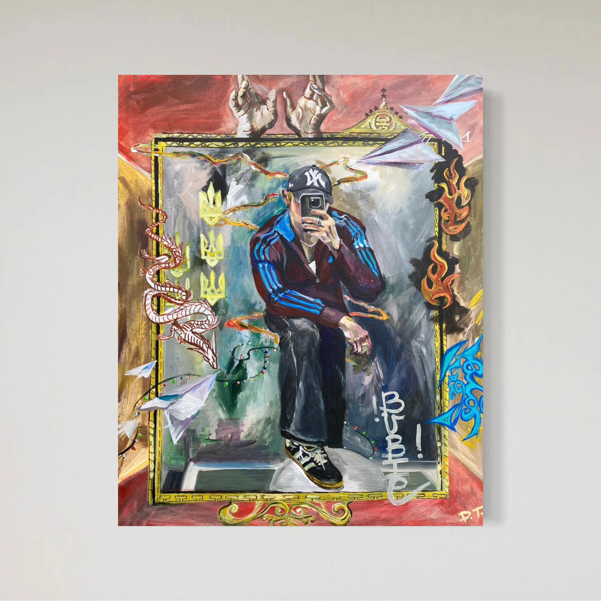 En original 80 × 100 cm akrylmålning av den ukrainska queerartisten Trach Bardo, som för närvarande skapar från Amsterdam. Detta livfulla verk hyllar den ukrainska kulturella identitetens rikedom genom djärva färger och uttrycksfull textur.