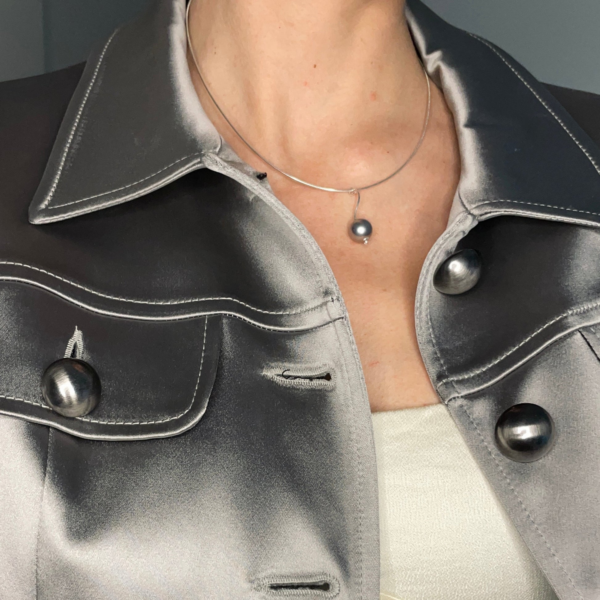 Elegant halsband med en glimmande pärla i moderpärla och detaljer i sterling silver. Finns i sofistikerad champagne eller klassisk grå för att passa din stil. Handgjort med omsorg i Stockholm av återvunnet silver – ett tidlöst smycke med en unik karaktär.