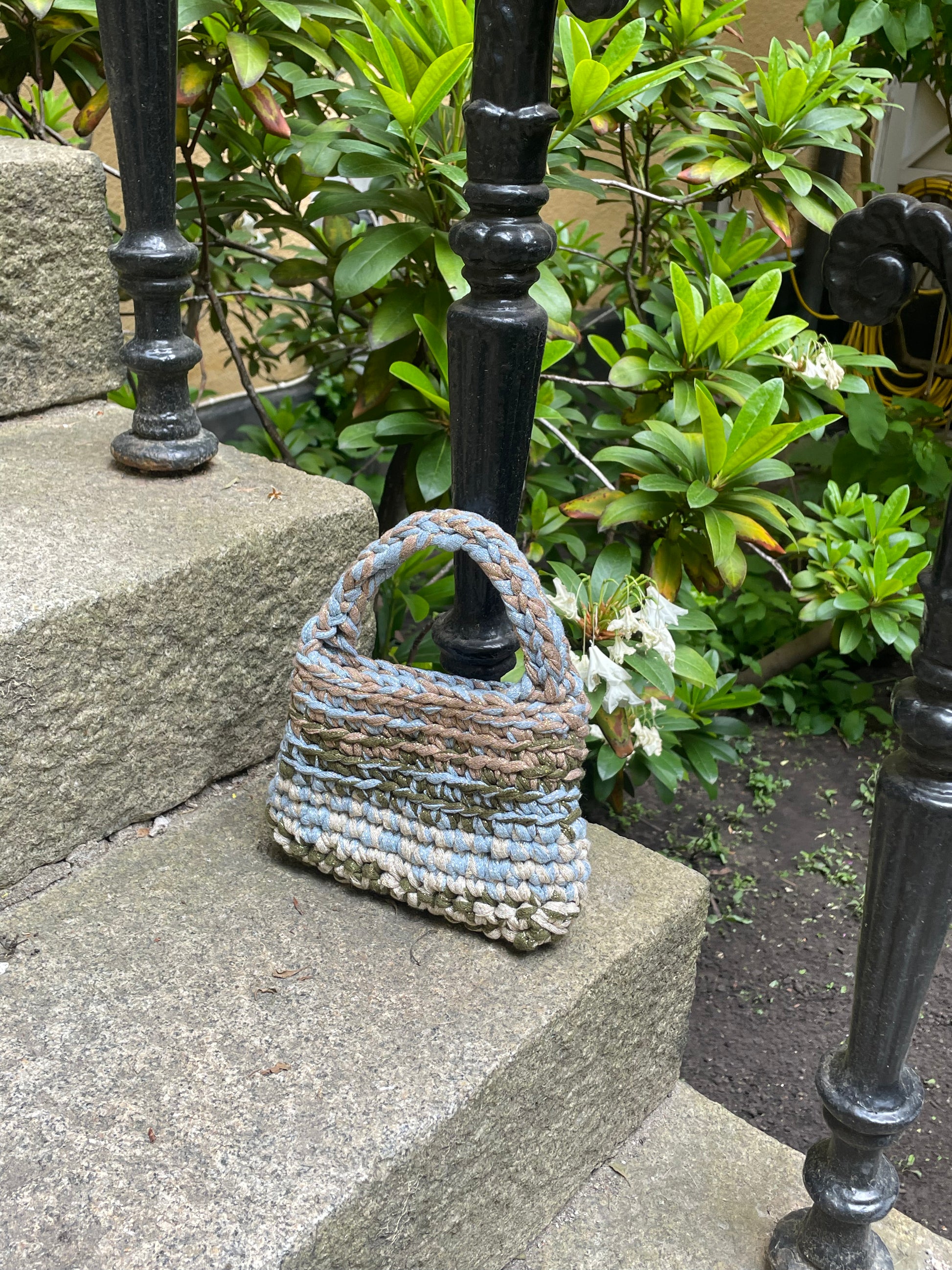 Flerfärgad Mini Partyväska - är den ultimata virkade partyväskan i sommar! En unik, snygg accessoar som kommer att piffa upp vilken outfit som helst.