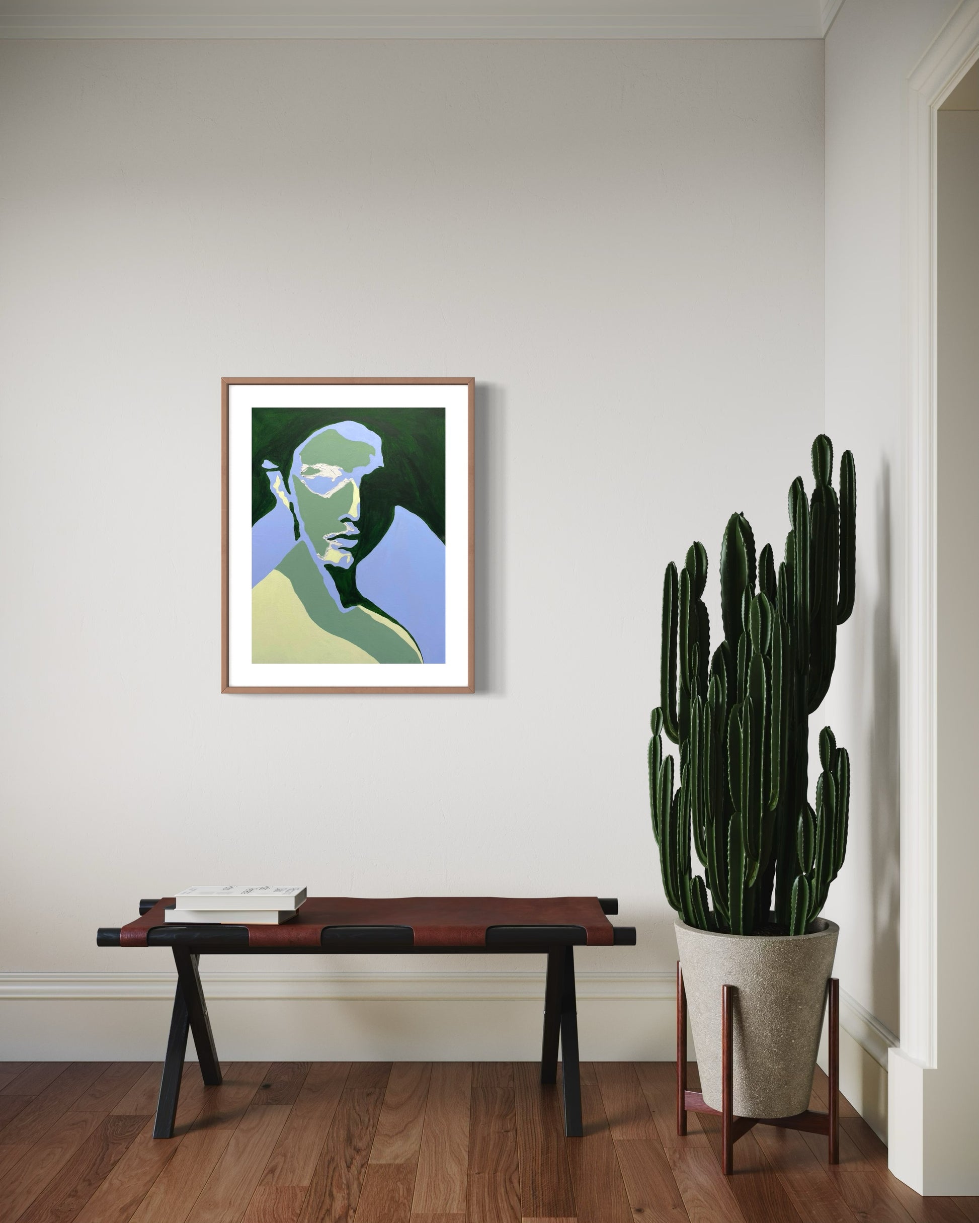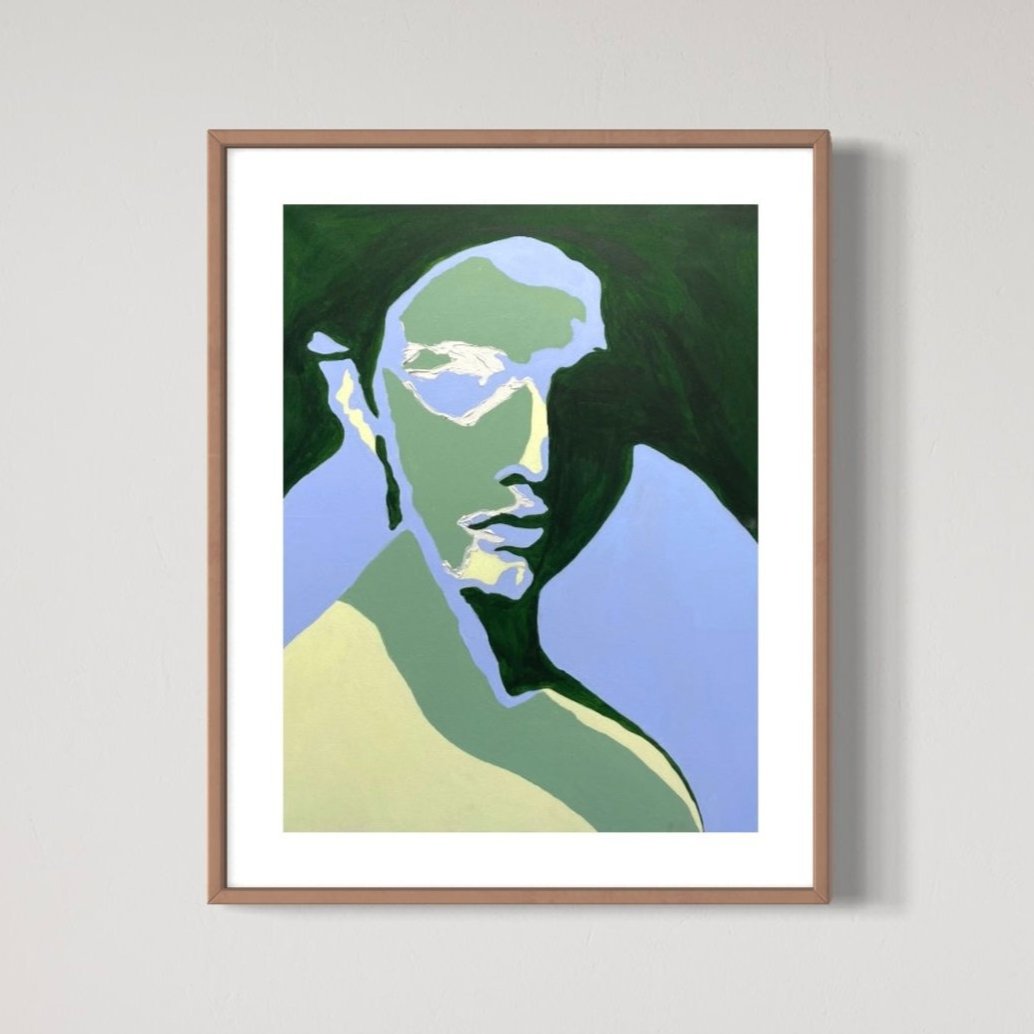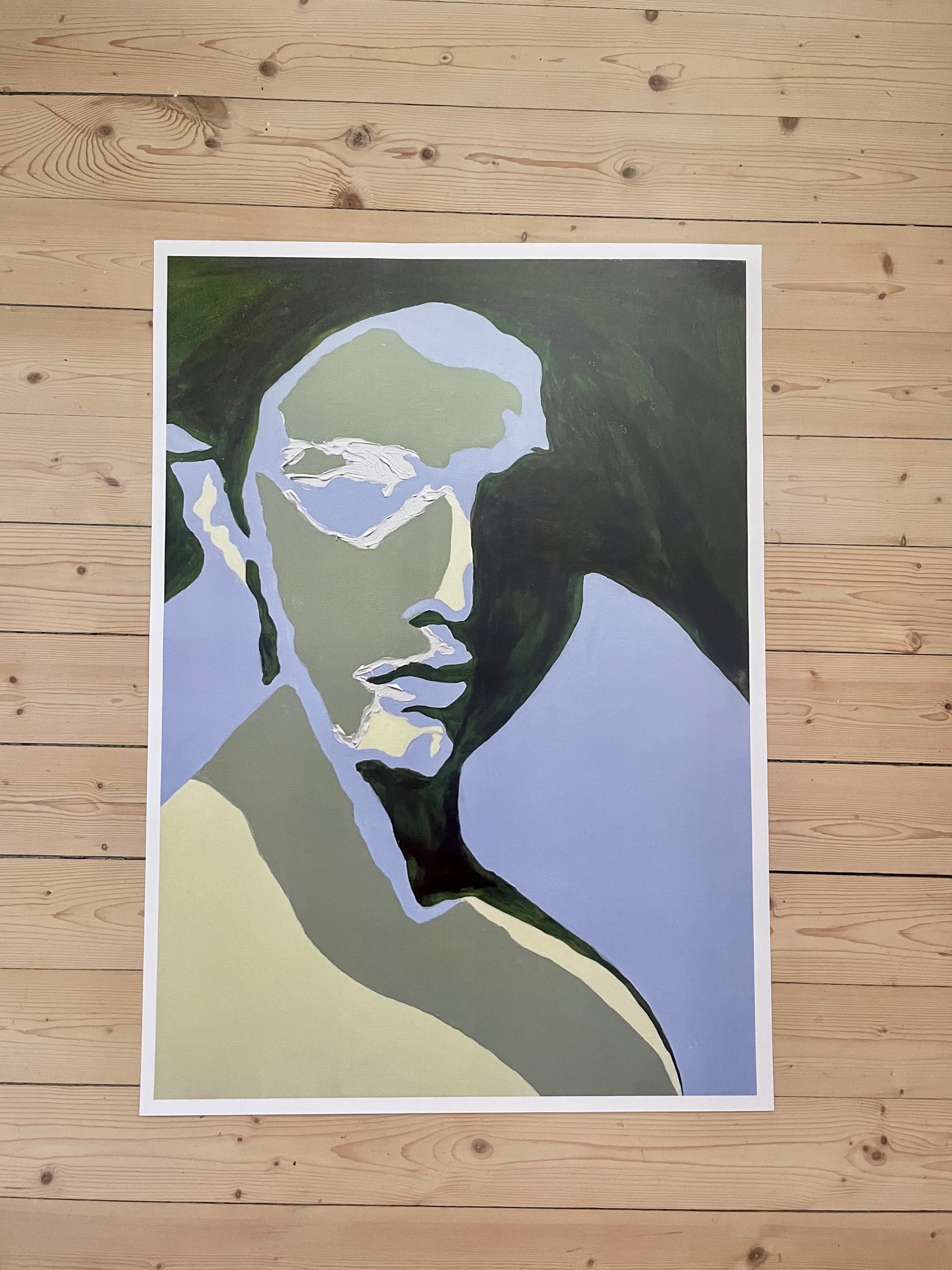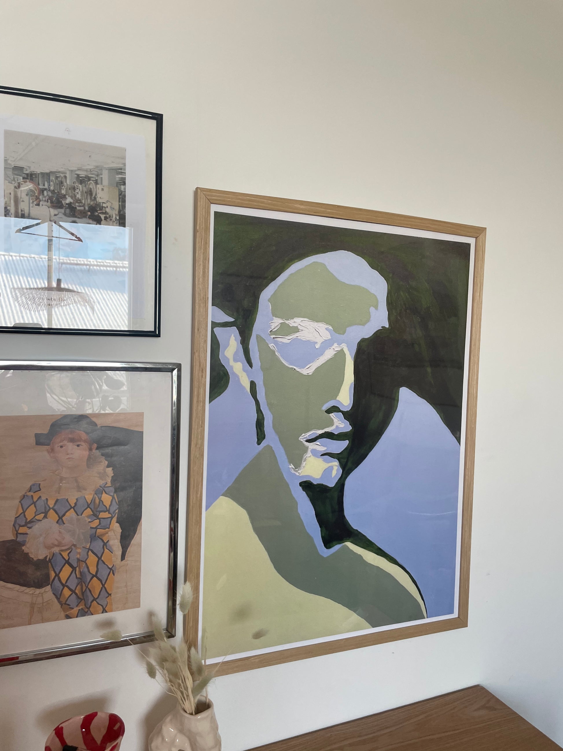 Upptäck detta iögonfallande abstrakta konsttryck av Freja Öhman, med en djärv och modern tolkning av det mänskliga ansiktet i nyanser av grönt, blått och lavendel. Denna unika samtida väggkonst är perfekt för dig som vill lyfta din inredning med en konstnärlig touch och skandinavisk design.