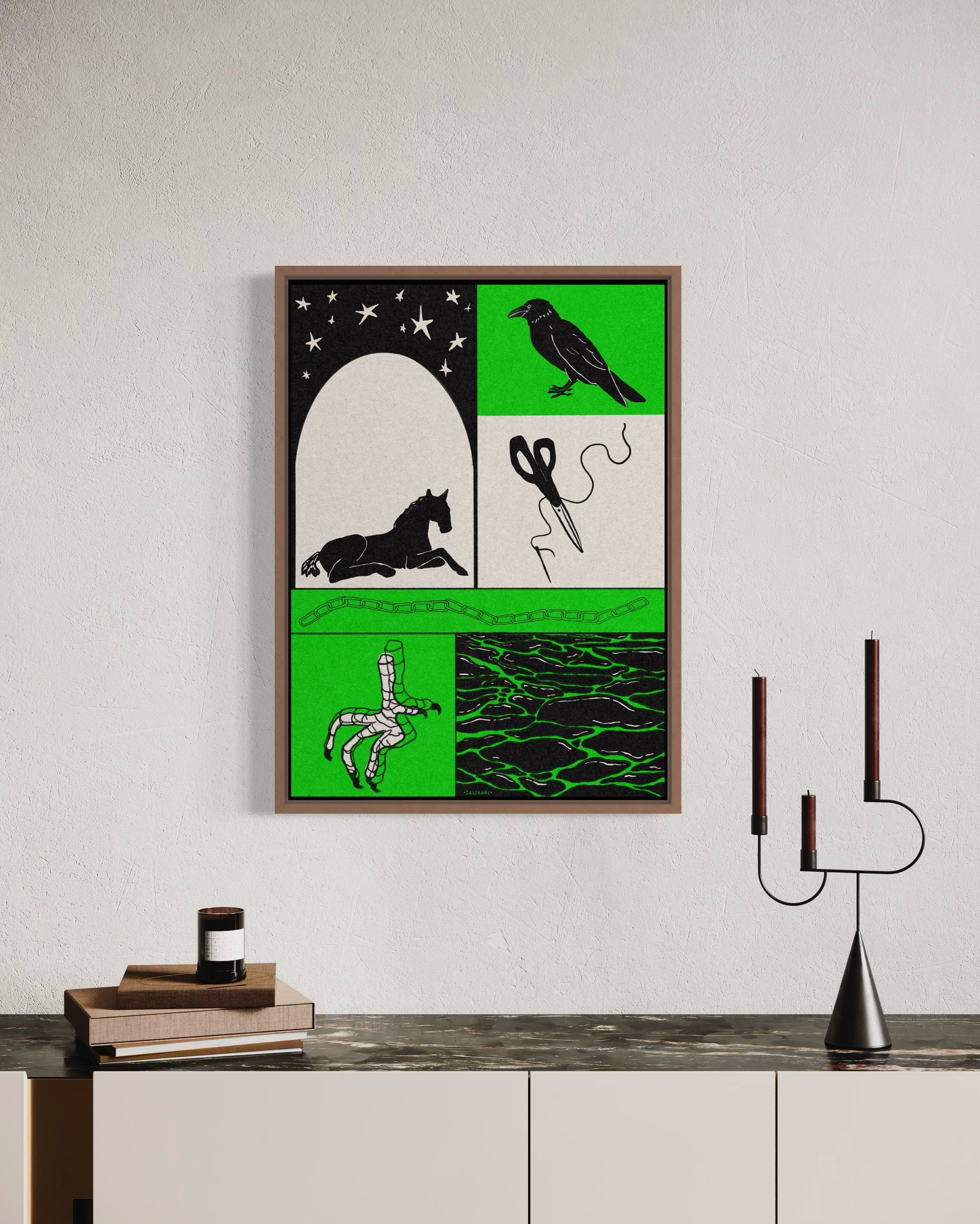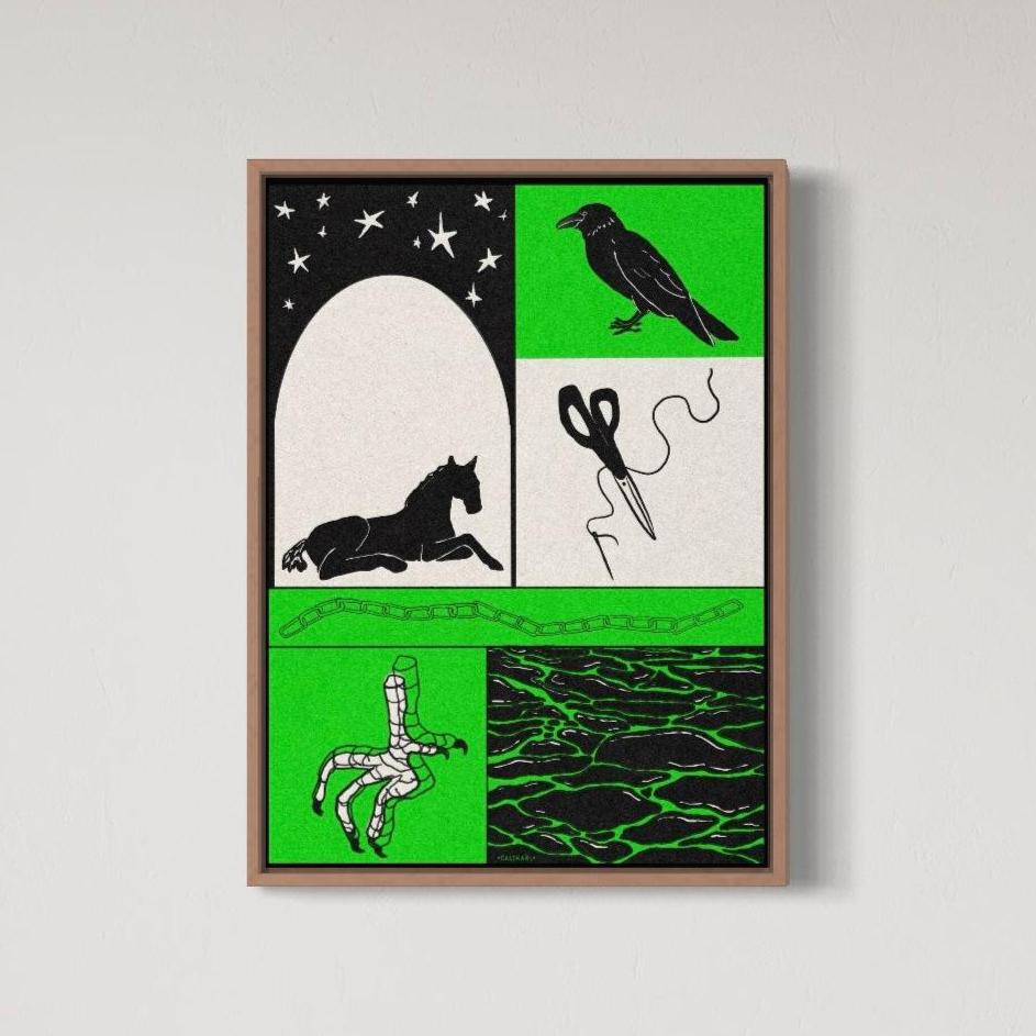Addera stil, edge och personlighet i ditt hem genom att dekorera dina väggar med denna unika, grafiska poster! CALIKARLs "Ocean Stargate" är ett illustrerad konstverk med olika motiv och mönster, och mycket av en klargrön färg.