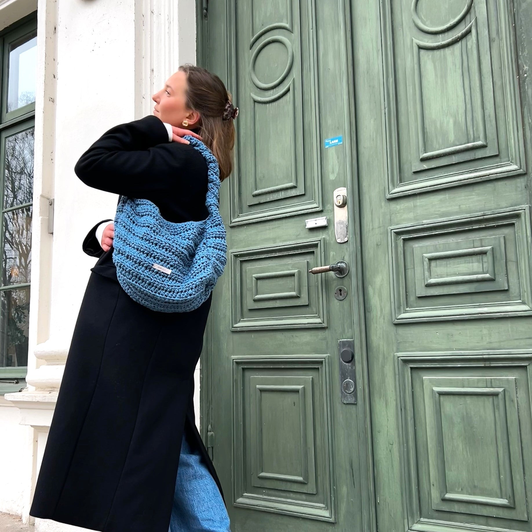 Odette är den perfekta väskan när du vill bära med dig lite mer. Den är bulky, stylish och ger en mjuk känsla till din outfit! Väskan bär du på axeln och har ett extra virkat lager i botten för stabilitet. Denna poppiga blå färg passar utmärkt till jeans och får vilken färglös dag som helst att kännas livfull!
