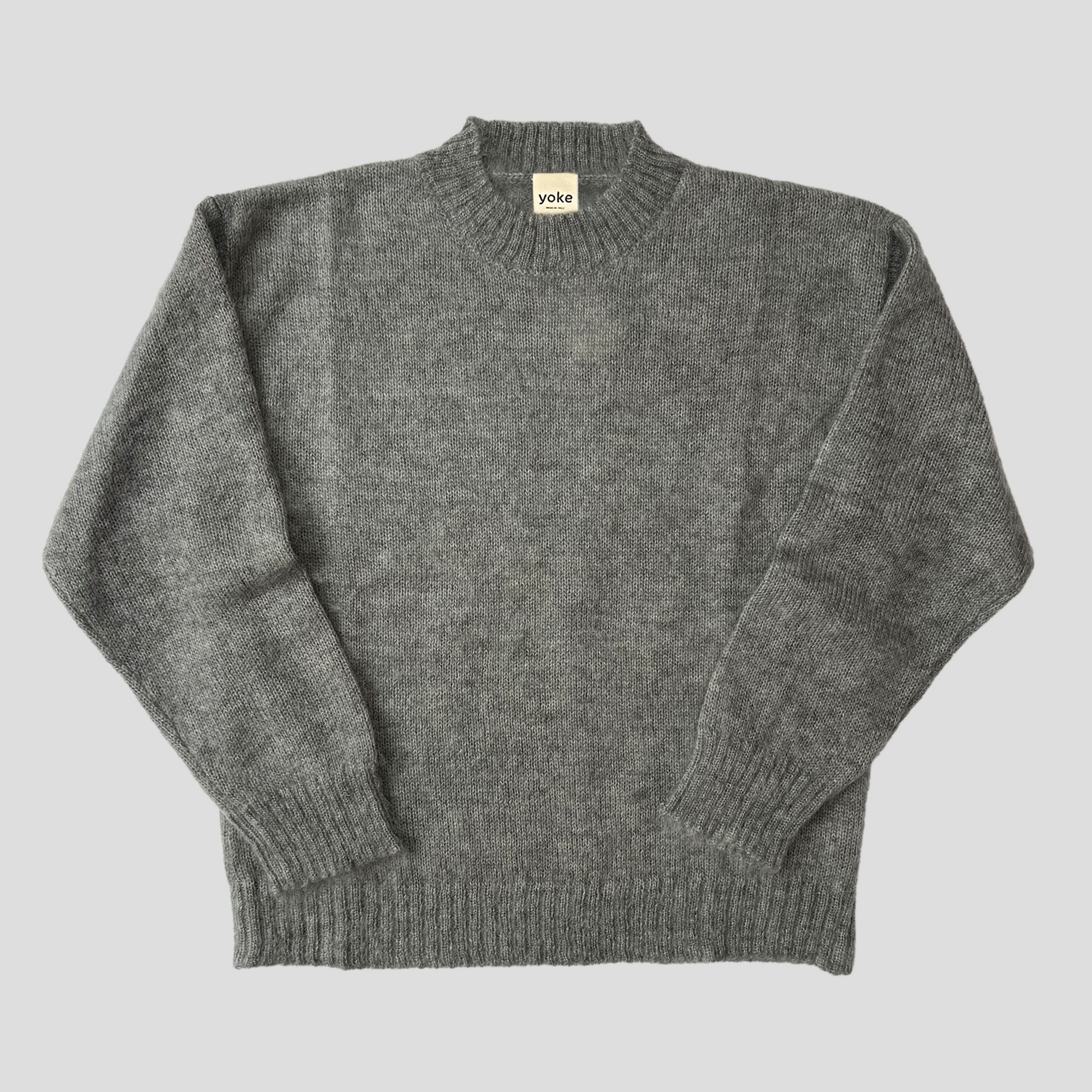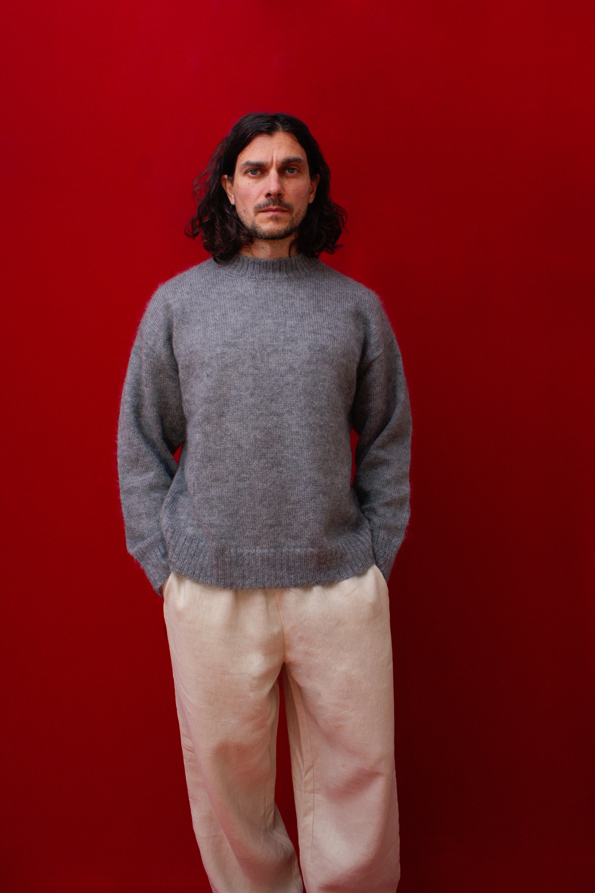 Supermjuk borstad Mohair- och Mulberry Silk stickad tröja i en avslappnad crew neck-passform. Detta lätta stickade plagg är andningsbart tack vare sin naturliga sammansättning, vilket gör att det håller dig sval på sommaren och varm på vintern. Det är designat för att vara könsneutralt, vänligen se storleksguiden för ytterligare information och här för mått på tröjan. Florian bär en storlek large.