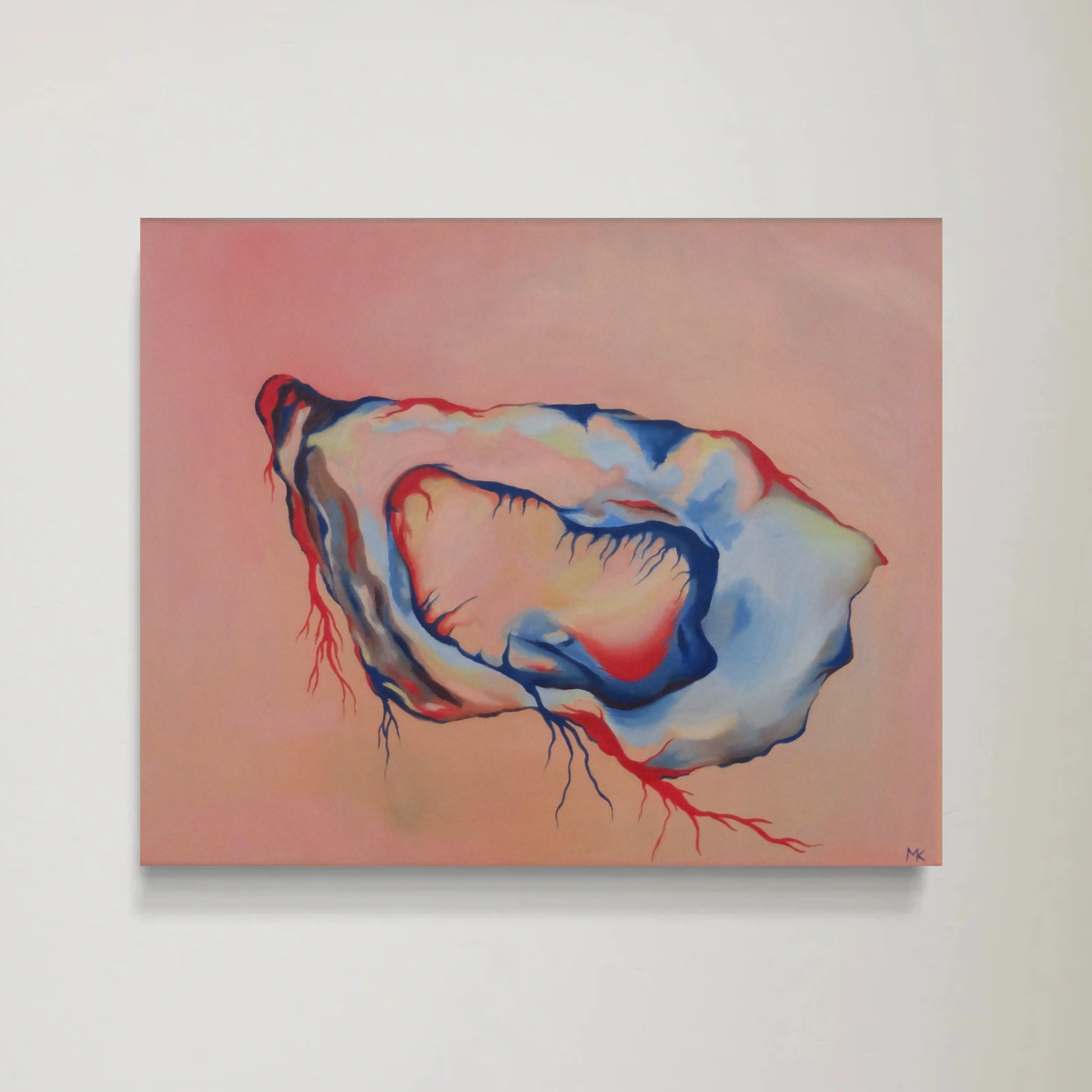 Oljemålning av ett abstrakt ostron från Bohuslän, som utforskar gränsen mellan realism och surrealism.