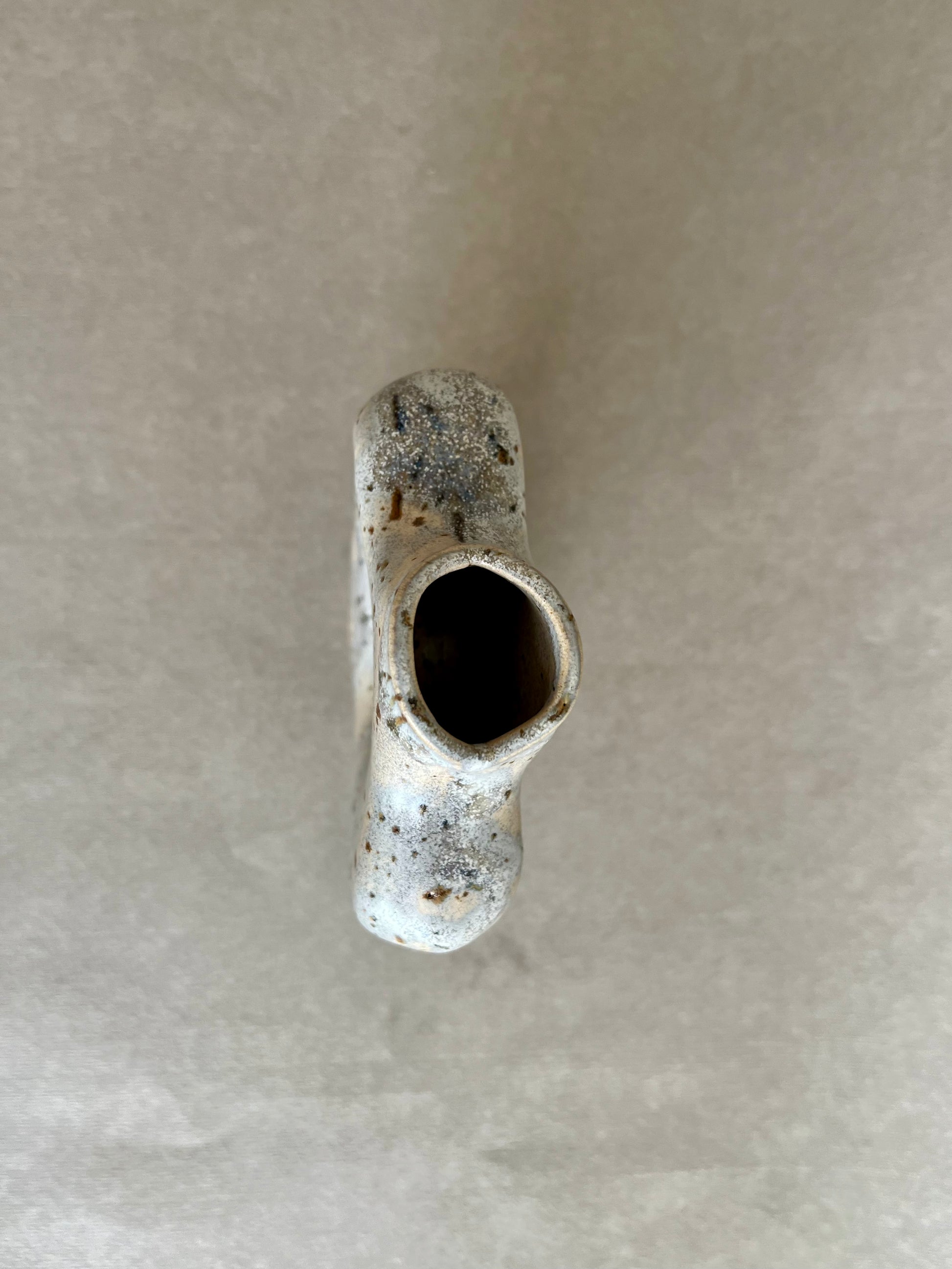 En handgjord keramisk vas i en neutral färg och unik form, skapad av den talangfulla Stilla Sinnet. Denna stiliga, tidlösa design är perfekt för att förvara blommor i och för att ge din heminredning ett lyft!