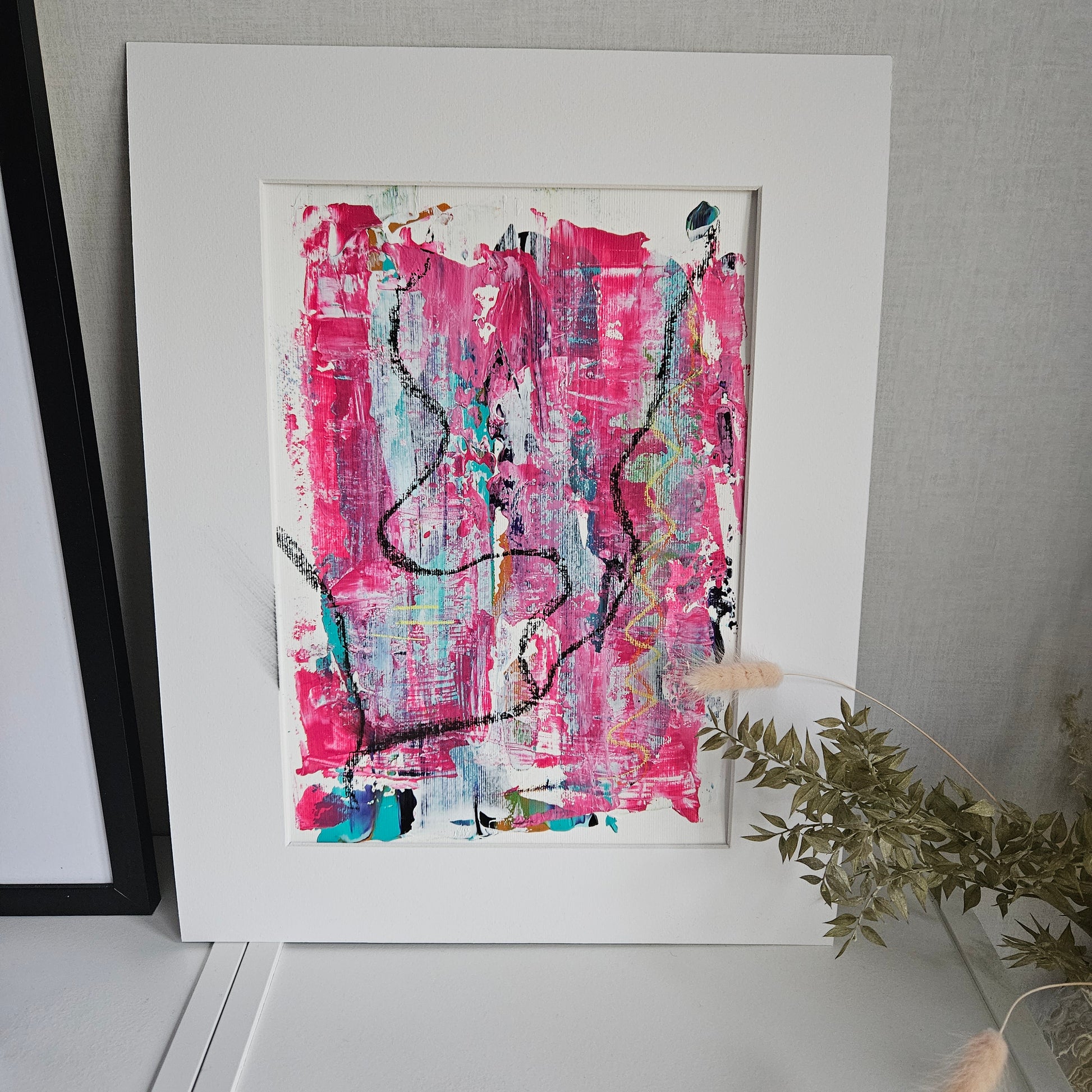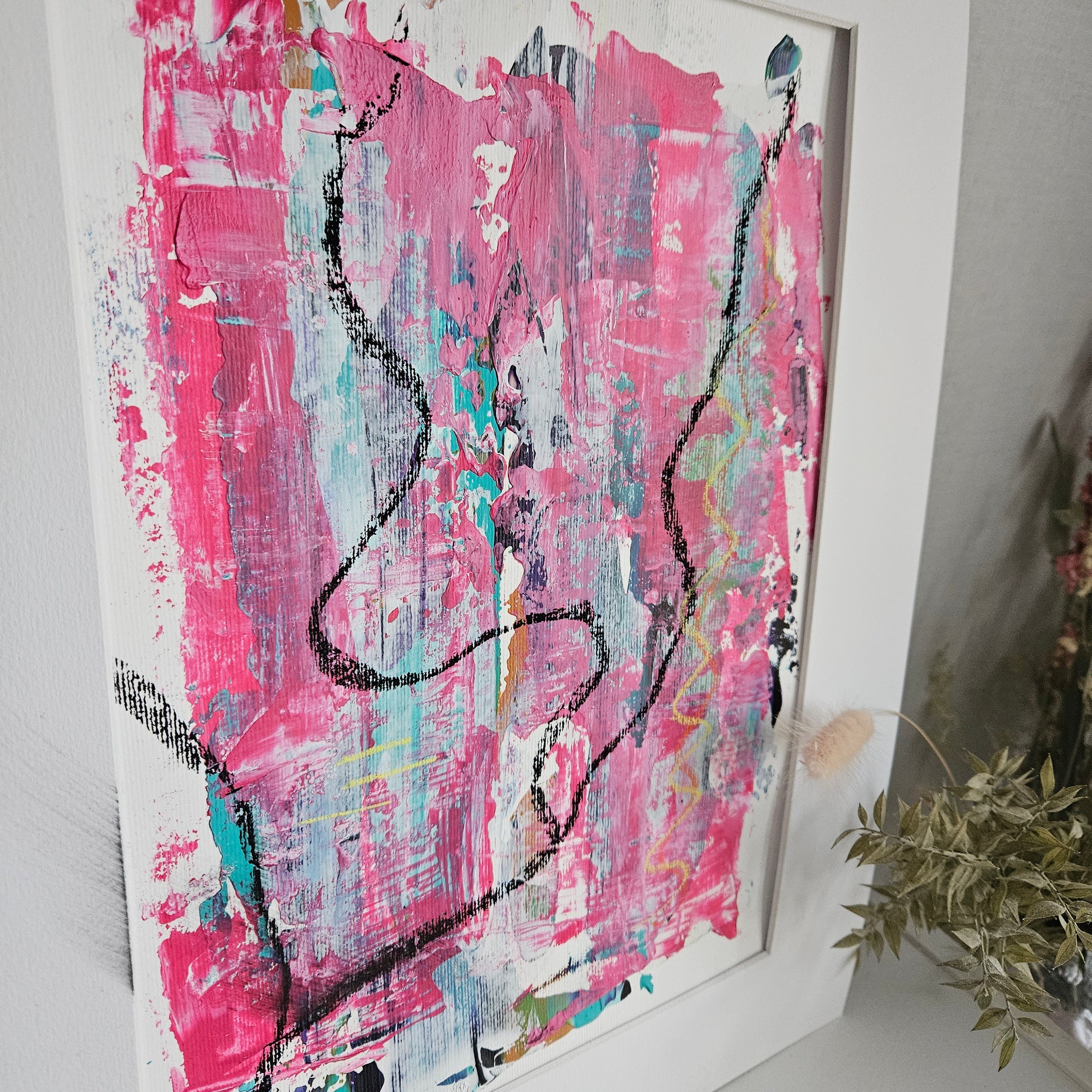 Poppande konstverk i rosa toner som väcker minnen av 90-talets bubblegumpop ur ett fritt sinne.