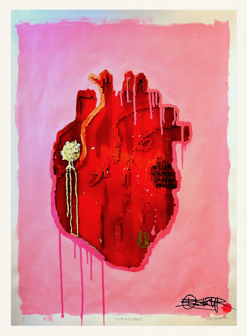 Fine Art Print på premiumpapper. Hela bakgrunden, samt detaljer, målade för hand och hjärta i högblank lack. Signerad, stämplad, numrerad och tryckt i begränsad upplaga (13 exemplar totalt).