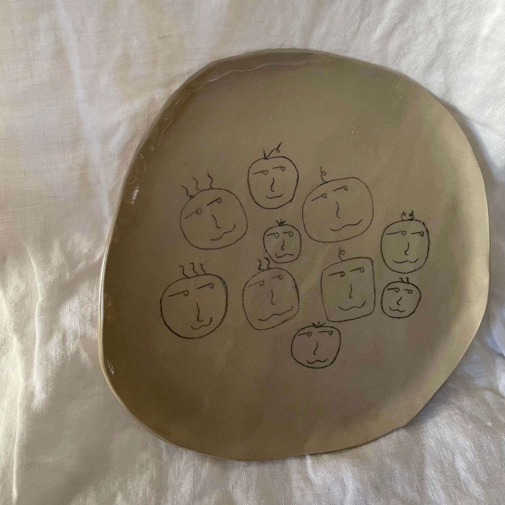 Handgjord keramik i stengodslera, målad med engobe och glaserad med transparent glasyr.