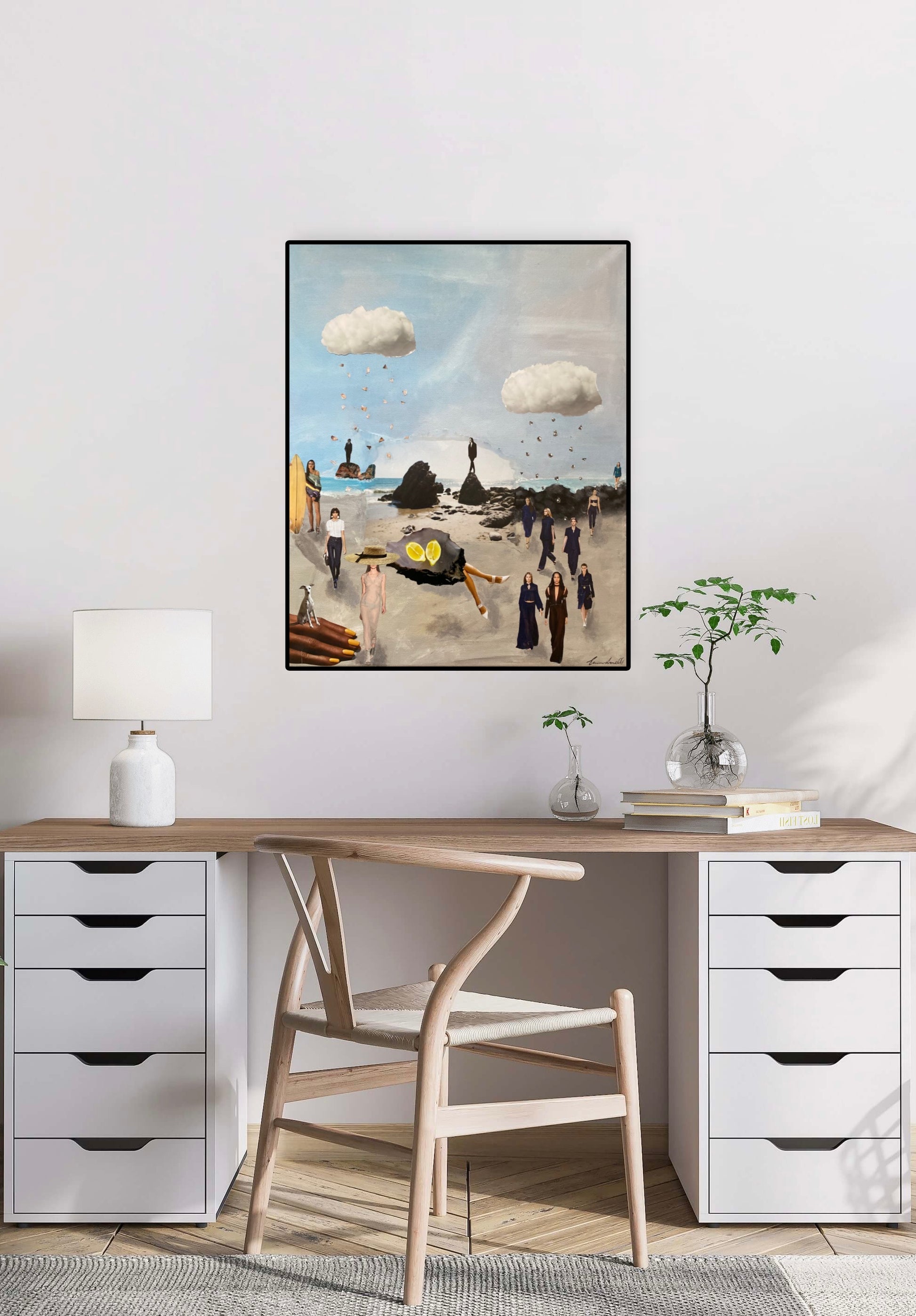 Detta är en affisch av den handgjorda, unika målningen "Sand" av Emma Lisnell. Ge glädje. stil och färg in i ditt hem med detta fantasifulla tryck!