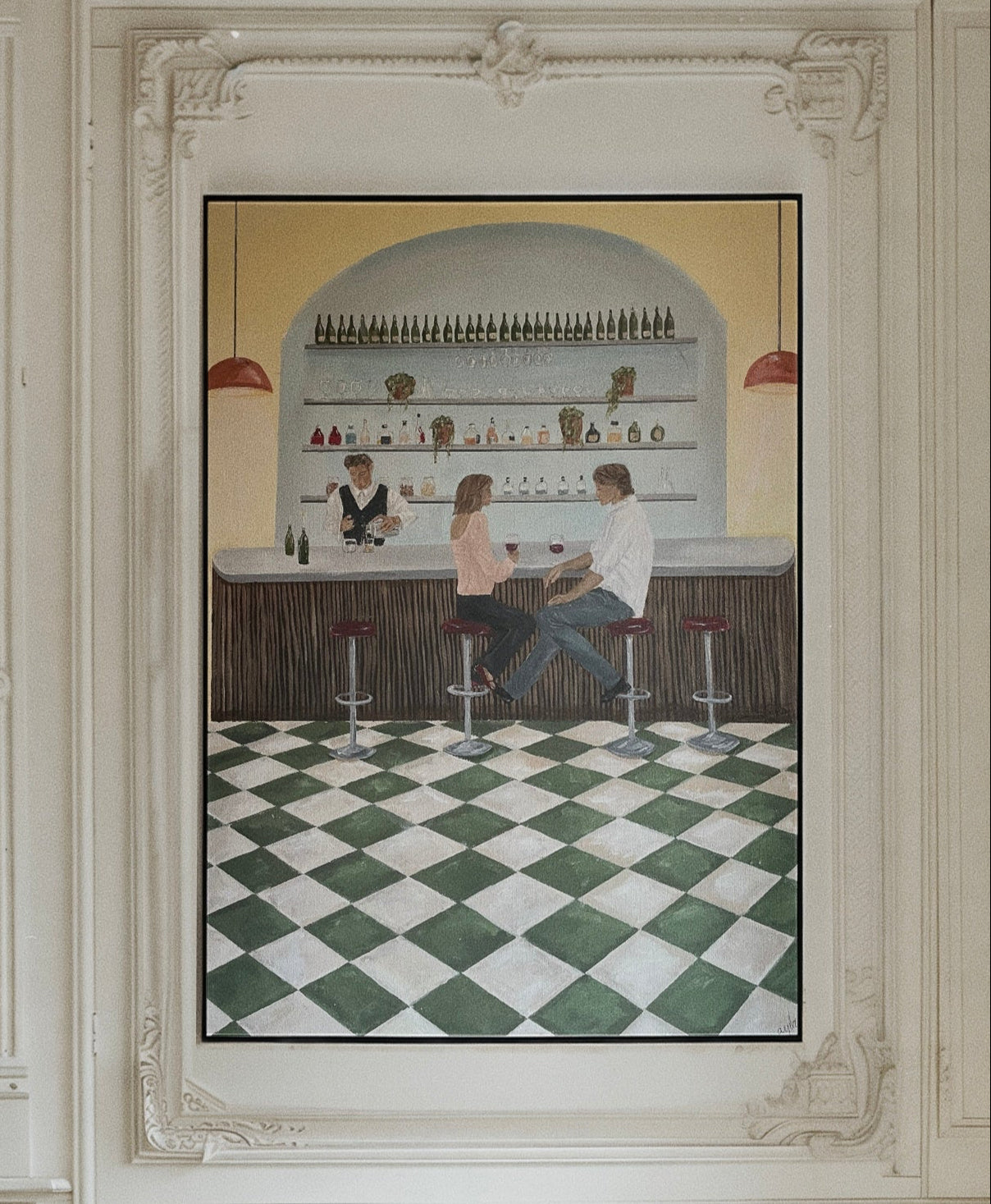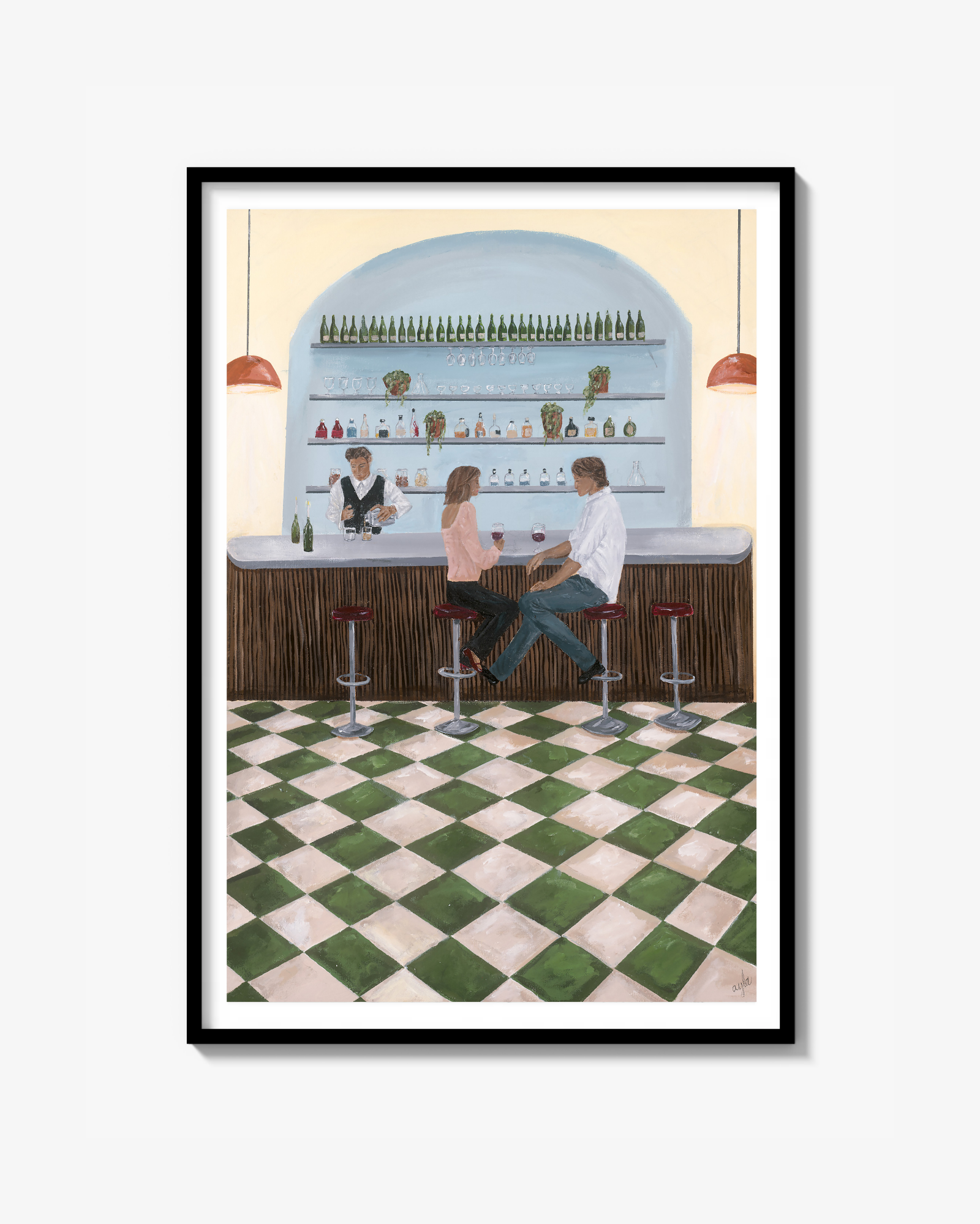 Gör ditt hem mysigt med denna färgglada, stiliga poster av ett samtal i baren!