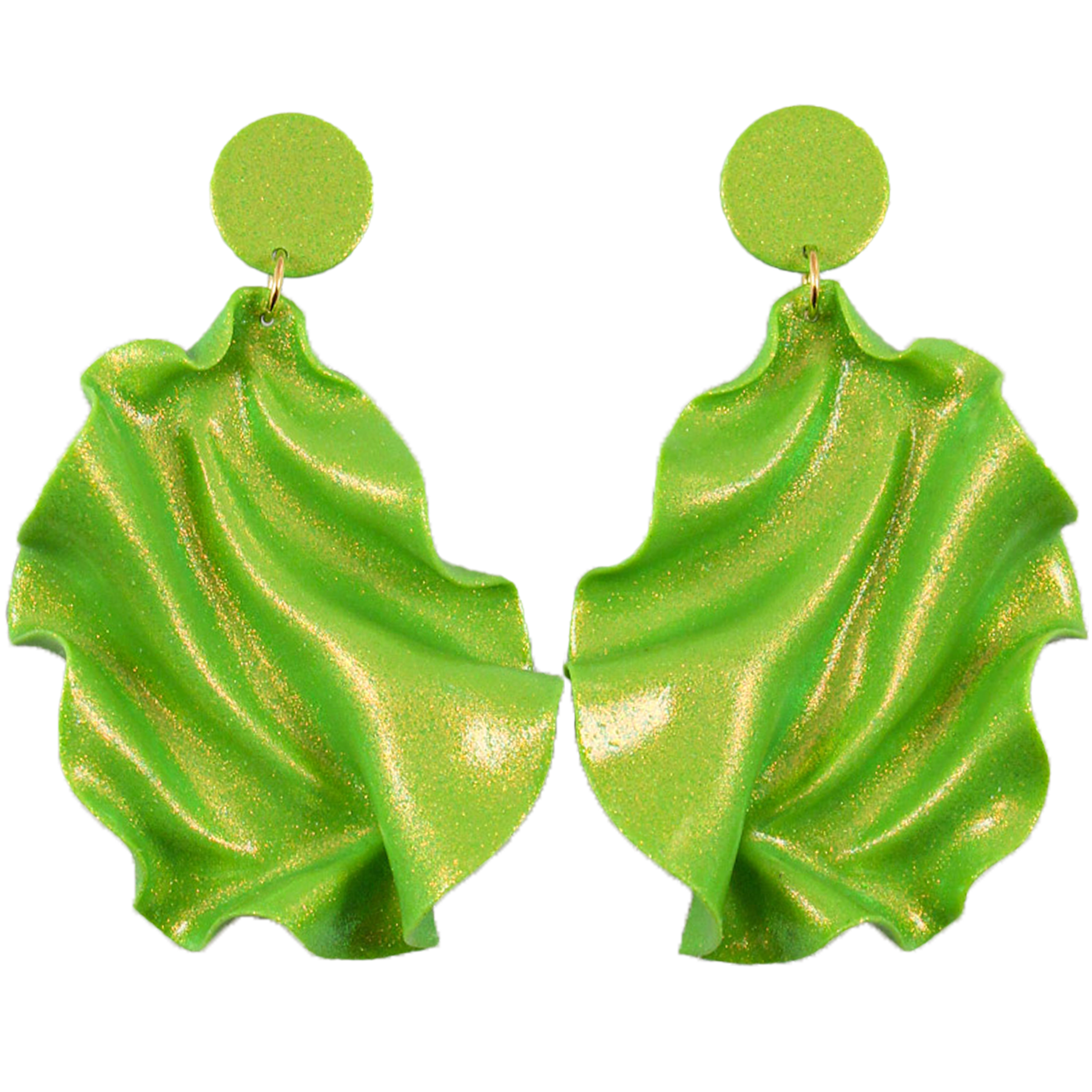 Satin Round Top Örhängen - Limegrönt glitter